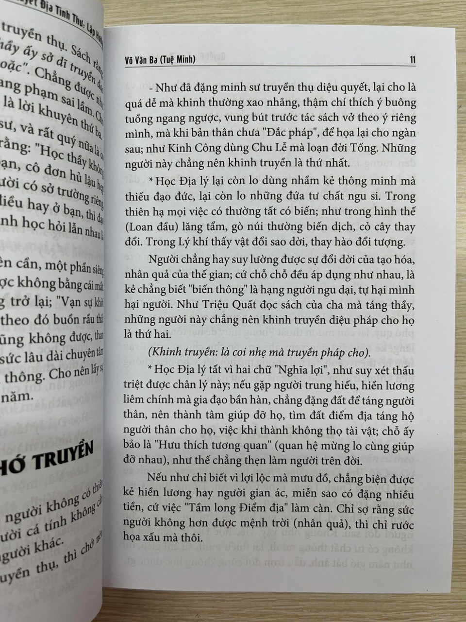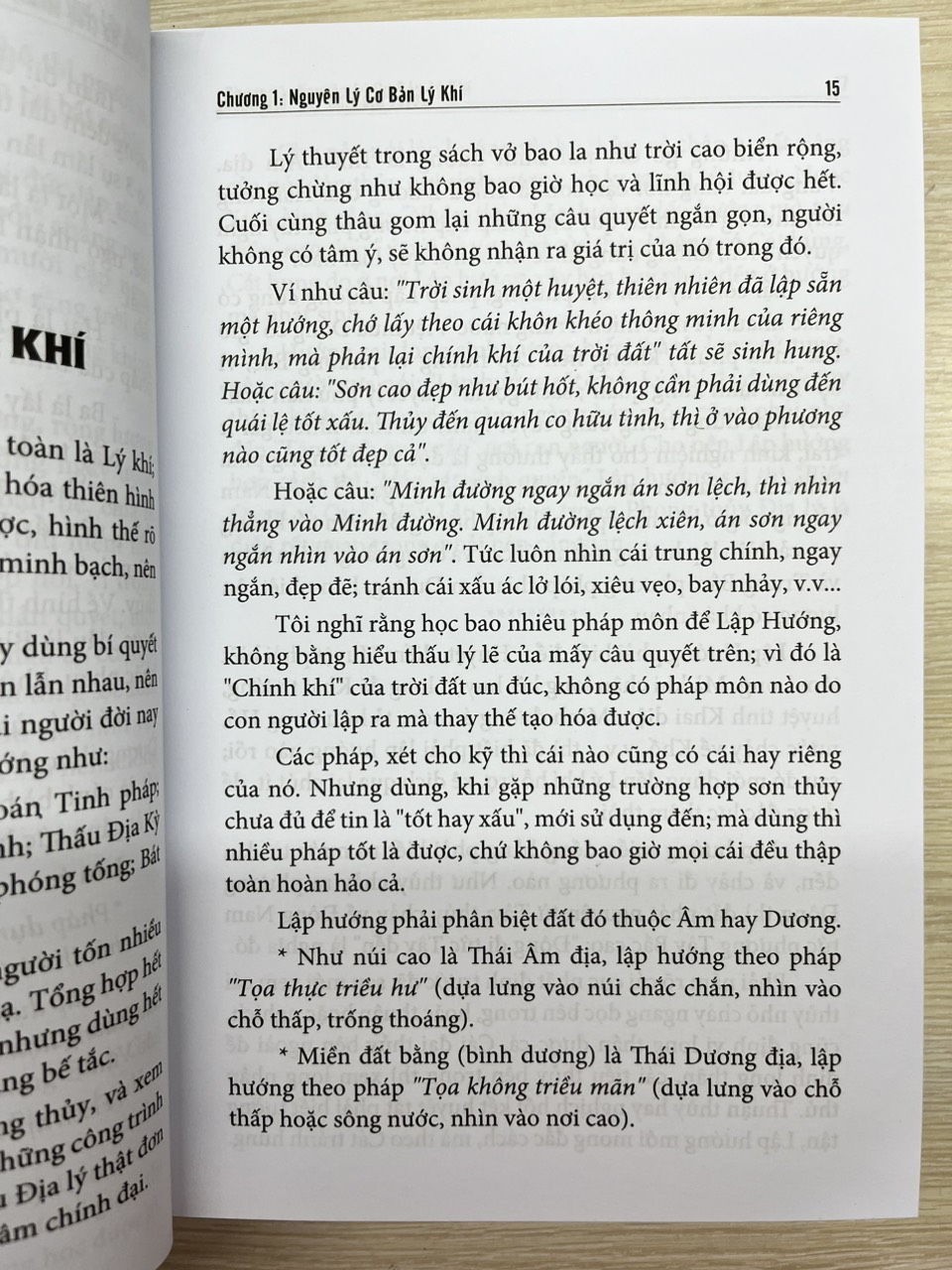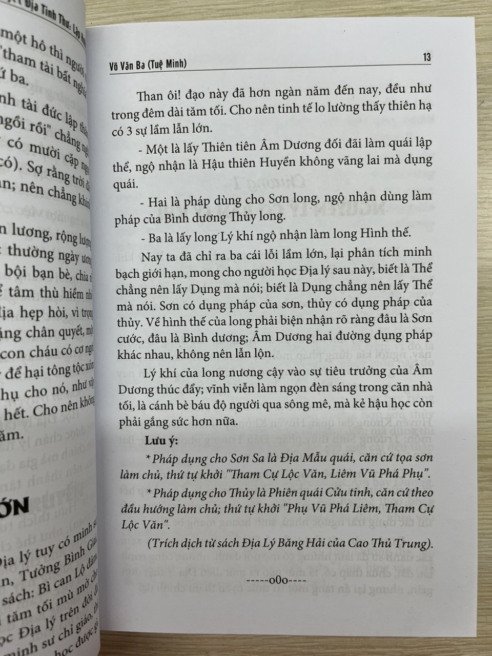 Cuốn sách khẳng định lập hướng có năm bảy cách, người theo Long, kẻ theo Thủy,áp nào cũng có cái hay riêng của nó; chọn sao cho nhiều tốt ít hung là được, trong thế gian không có gì thập toàn, thập mĩ cả.