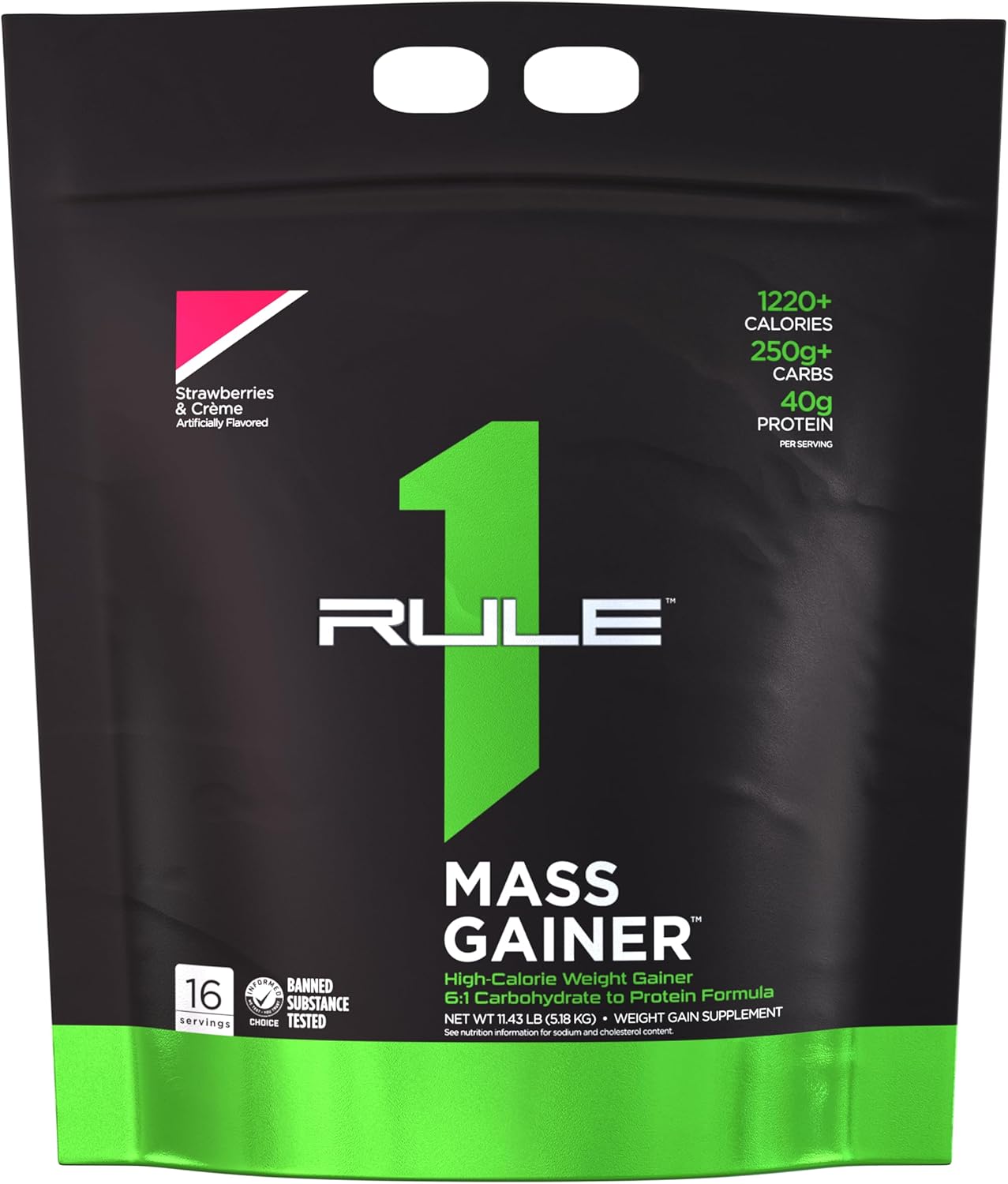 - Với hơn 1,200 calorie, hơn 250g carb và 40g protein từ 3 loại whey, R1 Mass Gainer giúp bạn tăng khối lượng cơ bắp XXL. Bên cạnh tỉ lệ carb trên protein là 6:1, công thức giàu calo bao gồm creatine, MCTs, và glutamine giúp bạn đạt được hình thể mong muốn