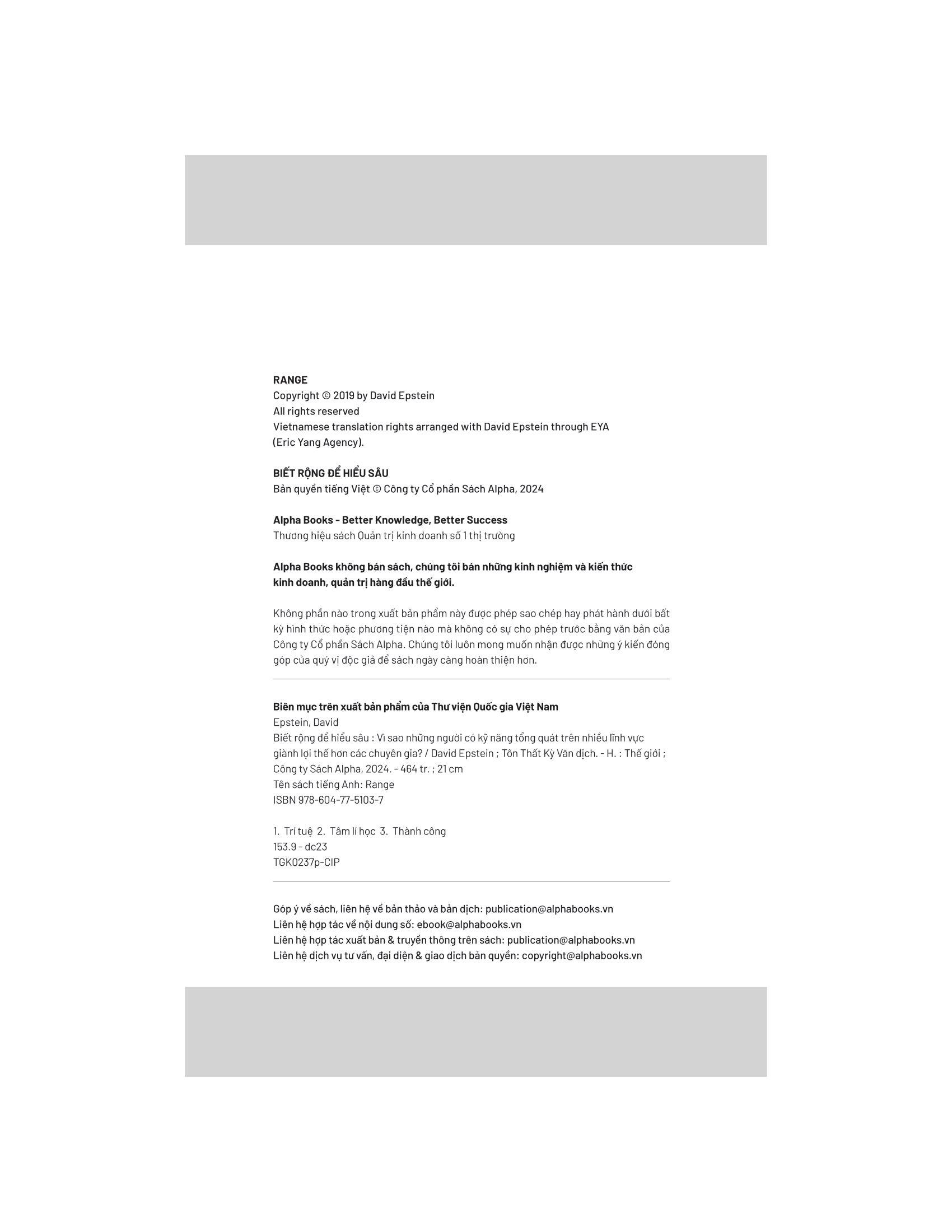 David Epstein đã kiểm tra các vận động viên, nghệ sĩ, nhạc sĩ, nhà phát minh, nhà dự báo và nhà khoa học thành công nhất thế giới. Ông phát hiện ra rằng trong hầu hết các lĩnh vực – đặc biệt là những lĩnh vực phức tạp và khó đoán – những người có tư duy tổng quát (chứ không phải chuyên gia) đều có tố chất xuất sắc. Những người theo chủ nghĩa tổng quát thường tìm ra con đường của m.ình muộn và họ có nhiều mối quan tâm hơn là tập trung vào một. Họ cũng sáng tạo hơn, nhanh nhẹn hơn và có thể tạo ra những kết nối mà những đồng nghiệp chuyên môn hóa không thể nhìn thấy.