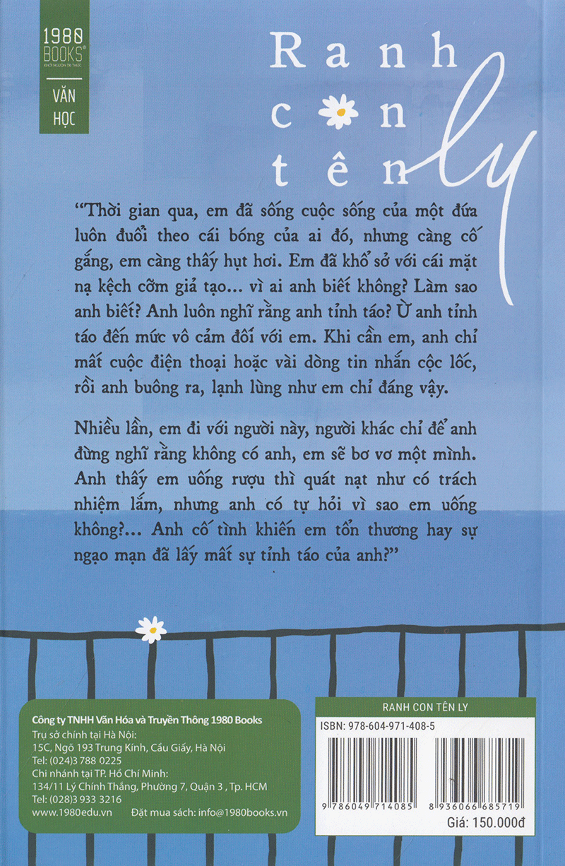 Mua tại TiktokRanh con tên Ly là cuốn sách tập hợp những truyện ngắn được yêu thích nhất trên mạng của tác giả Song Hà. Những truyện ngắn ấy – hài hước, tếu táo, giản dị, được viết bởi giọng văn lôi cuốn, tự nhiên; đã mang đến cho độc giả những cảm xúc khó nói thành lời. Những truyện ngắn ấy – tưởng chừng đơn giản, có thể bắt gặp ở bất cứ đâu trong đời sống thường nhật, nhưng vì sao qua ngòi bút Song Hà lại trở nên nhẹ bẫng, bất cần và hấp dẫn đến thế? Những truyện ngắn ấy – khiến ta không thể ngừng đọc, ngừng cười và ngừng ngẫm nghĩ.