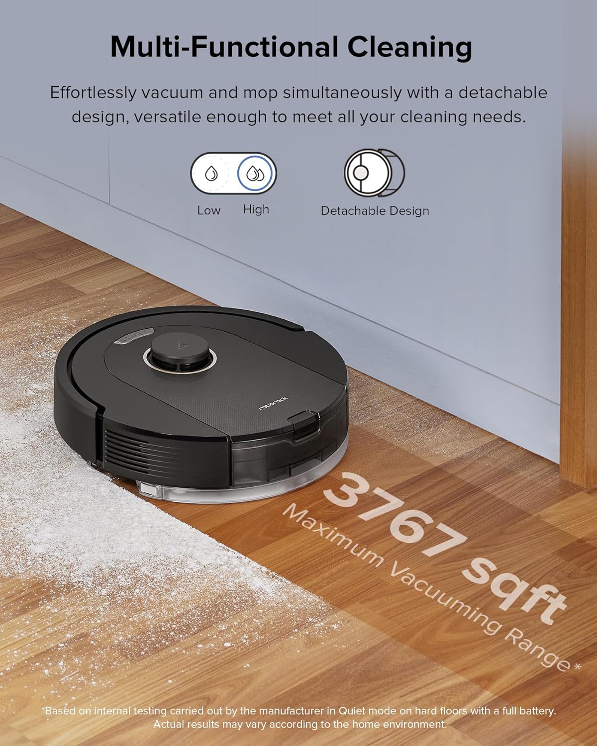 - Công nghệ điều hướng ElegantGyro với cảm biến - Công suất động cơ 1800 PA, 7 chế độ, Ứng dụng có thể lập trình, Alexa và Trợ lý Google - Quét, hút bụi, lau