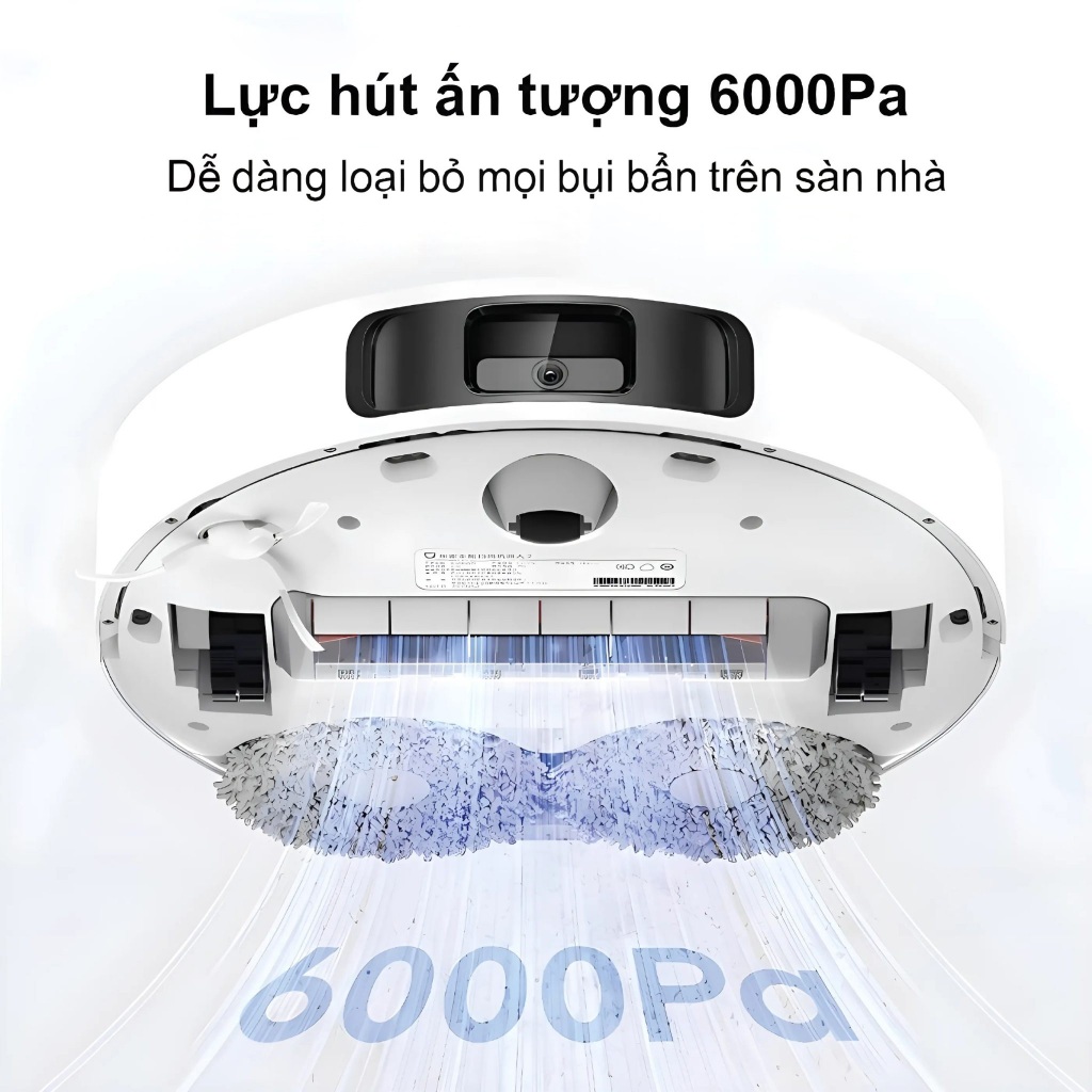 - Đánh bay mọi vết bẩn với lực hút 6000Pa mạnh mẽ kết hợp công nghệ lau xoay kép 360 độ nâng cấp