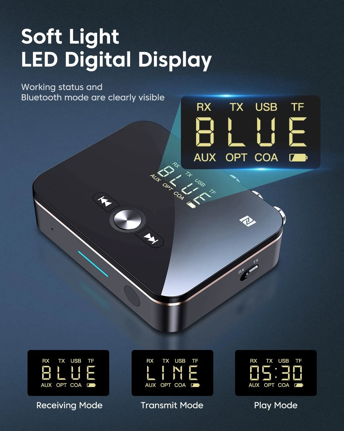 ✨ROGTZ - Bộ Thu Phát Bluetooth Đa Năng M8 NFC, Chip AC6951C, Bluetooth 5.0, Màn Hình LED, Pin Lithium-ion 3.7V/500mAh, 8h, Phạm vi truyền 10m, Kết nối AUX 3.5mm/RCA kép/Coaxial/Optical, Màn LCD, Hỗ Trợ Nhiều Giao Diện - Hàng Chính Hãng