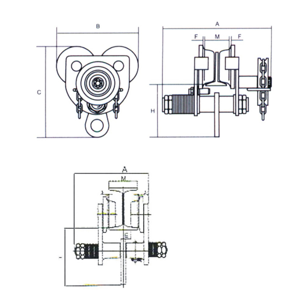 Rùa kéo tay, cụm móc treo palang 2 tấn, cụm treo pa lăng, móc treo plang có xích Thông số kĩ thuật rùa kéo tay, cụm móc treo palang 2 tấn, cụm treo pa lăng, móc treo plang có xích: Tải trọng: 2 tấn