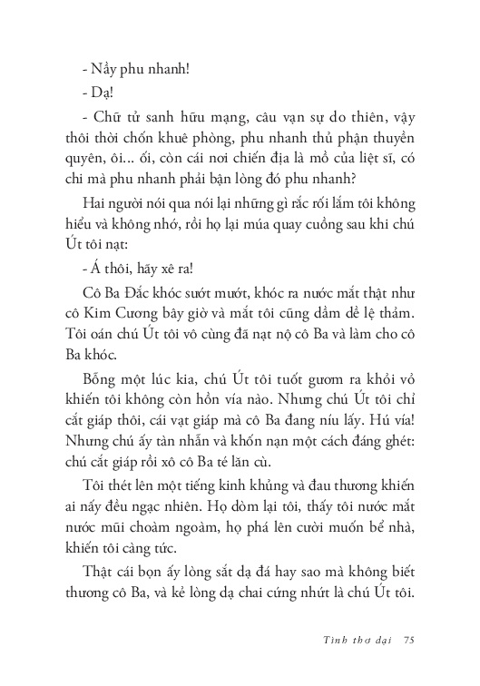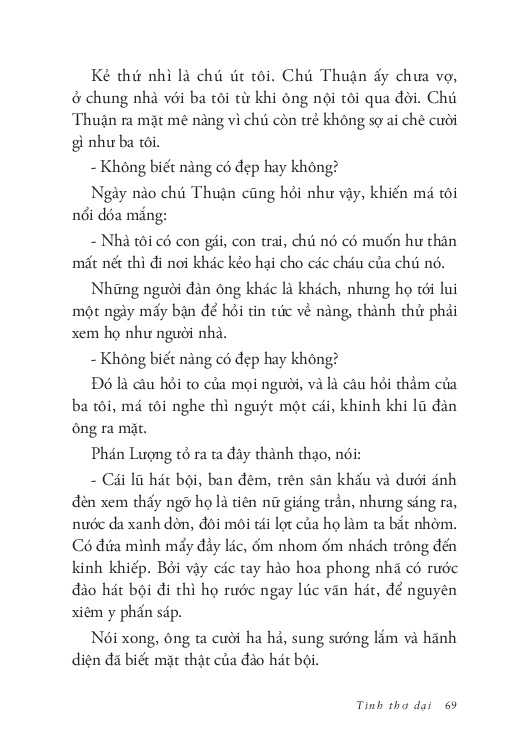 Trích đoạn Những chùm trái đỏ  “Người xa vắng nhớ chăng cảnh này? Còn nhớ không gã trai bạn của những mùa vàng xưa? Đỉnh dùng răng cắn bật cái nút chai, ngửa cổ tu từng