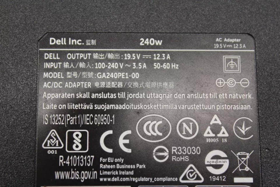 - Tên sạc: Sạc dành cho Laptop Dell Mobile Precision Workstation M3550 M5550 - Công suất: 240W - Chuẩn chân cắm: 7.4 mm x 5.0 mm Chân Kim - Điện áp vào(input): 100V - 240V
