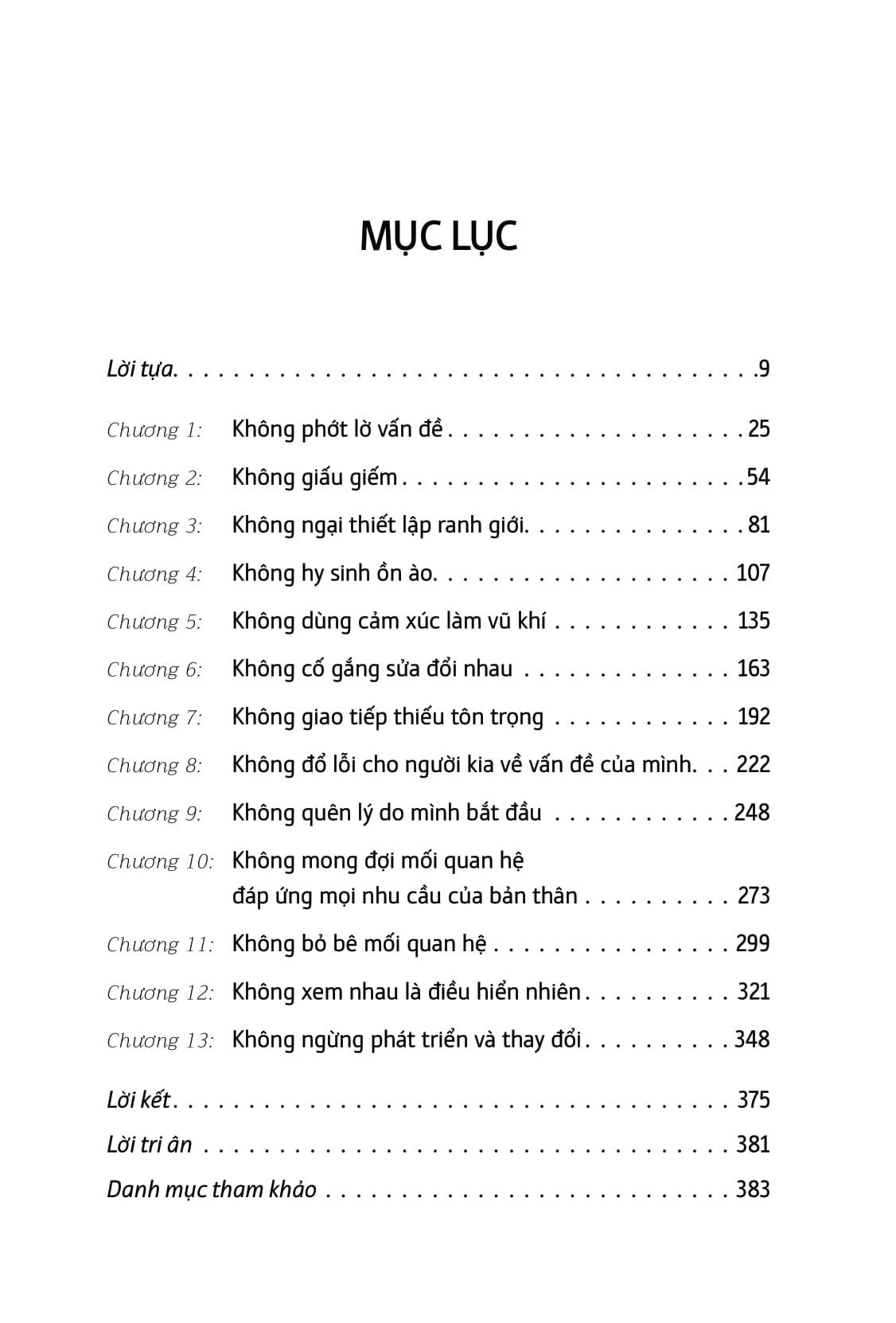 Bạn sẽ tìm thấy những mẫu chuyện đời thực, bài tập thực hành, câu hỏi tự phản tư, và cả lời khuyên từ các chuyên gia trị liệu hôn nhân. Dù bạn đọc một m.ình hay cùng người thương, cuốn sách luôn gợi mở một cách để bắt đầu một cuộc trò chuyện lành mạnh thay vì một cuộc tranh cãi mới.