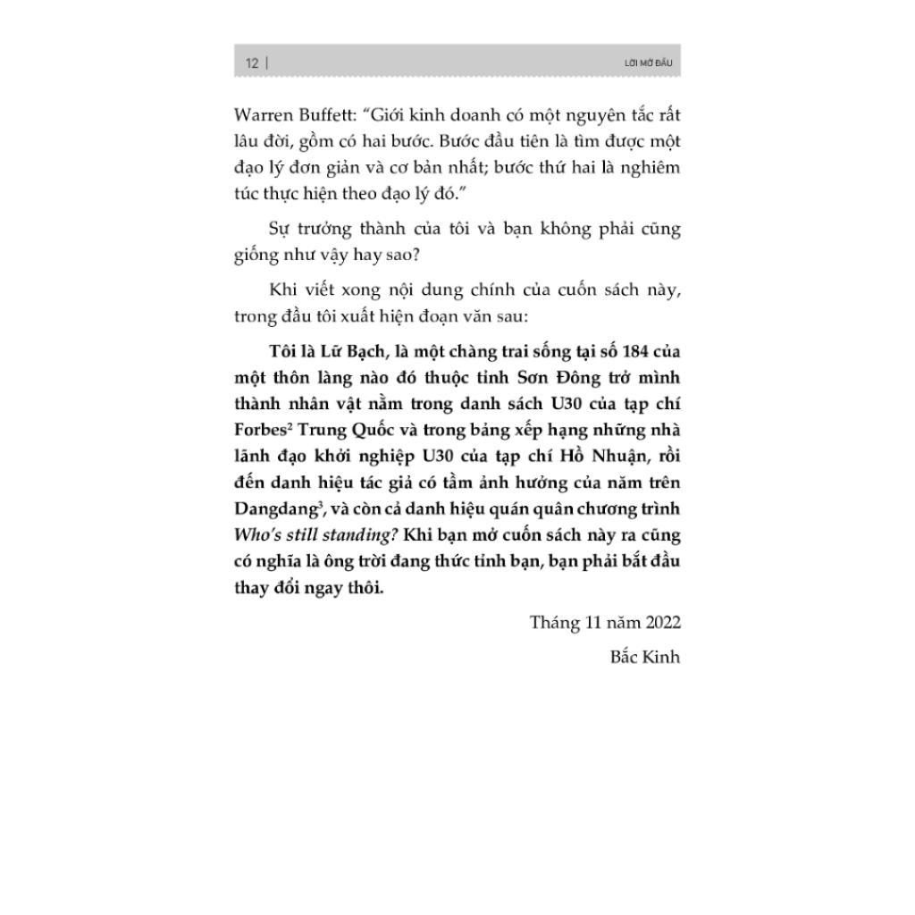 Sách - 21 Ngày Định Vị Bản Thân: Nói Không Với Sự Trì Hoãn - MCBooks Nội dung cuốn Sách 21 Ngày Định Vị Bản Thân: Nói Không Với Sự Trì Hoãn - MCBooks Bạn là người luôn miệng nói phải dậy sớm nhưng lại không biết cách tận dụng 1 giờ vàng sao? Bạn là người sợ hãi phải nói chuyện khi đứng trước đám đông sao? Bạn là người mỗi ngày đều vô cùng nỗ lực nhưng cuối cùng lại không làm nên trò trống gì hay sao? Bạn có phải những "tân binh" không biết cách báo cáo với cấp trên ở nơi làm việc không? Bạn khát khao có được mạng lưới quan hệ cao cấp nhưng lại không dám trò chuyện với những người ưu tú hơn mình sao? Trong cuốn sách này, Lữ Bạch chia sẻ cách nhanh chóng thực hiện các thay đổi và phát triển hiệu quả trong 21 ngày. Từ chối những nỗ lực và tưởng tượng sai lầm, chỉ cần làm và thực hiện nó. Nó được viết cho những người bình thường như anh ấy, những người không có nền tảng trường lớp danh giá nhưng muốn thay đổi vận mệnh của mình thông qua sự chăm chỉ. Học được các kỹ năng nâng cấp bản thân như quản lý thời gian, nâng cao hiệu suất, tư duy kiếm tiền, cải thiện nâng cấp cách biểu đạt và quản lý cấp trên để có thể lột xác từ một "tân binh" trở thành một tinh anh ở nơi làm việc! Nắm chắc 21 bí quyết để có được sự thay đổi nhanh nhất, mở ra tầm nhìn mới cho cuộc sống, kéo dài khoảng cách với những người cùng trang lứa. Đứng đầu "Danh sách 30 Under 30 của Forbes Trung Quốc năm 2021", "Nhà lãnh đạo doanh nhân dưới 30 tuổi của Hurun năm 2020", quán quân số báo đơn "One Stop to the End 2019", nhà văn có ảnh hưởng hàng năm của Dangdang, cựu giám đốc tiếp thị nội dung của Zhihu, cựu giám đốc hạng mục Ô tô và Cảm xúc Tencent Weishi, diễn giả của Moshitalks, giảng viên của học viện Kinh tế và Quản lý Doanh nhân Thanh Hoa ... Với kinh nghiệm sống phong phú và nhiều chức danh nghề nghiệp khác nhau, Lữ Bạch, với tư cách là một thanh niên "hậu 95", đã đạt được những thành tích khiến nhiều đồng nghiệp phải ghen tị . Thông tin chi tiết cuốn sách Sách 21 Ngày Định Vị Bản Thân: Nói Không Với Sự Trì Hoãn - MCBooks