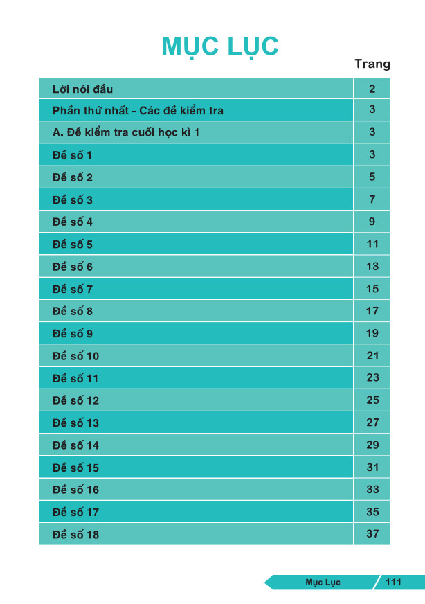 Phần 1: Các đề kiểm tra: gồm 18 đề kiểm tra cuối học kì I và 18 đề kiểm tra cuối học kỳ 2