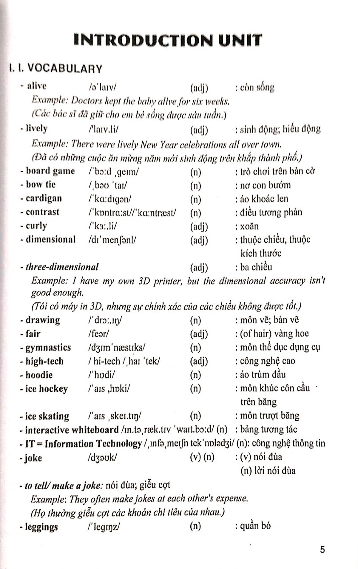 Vocabulary: giải thích ý nghĩa những từ mới trong mỗi Unit; có một số ví dụ minh hoạ cách dùng từ.