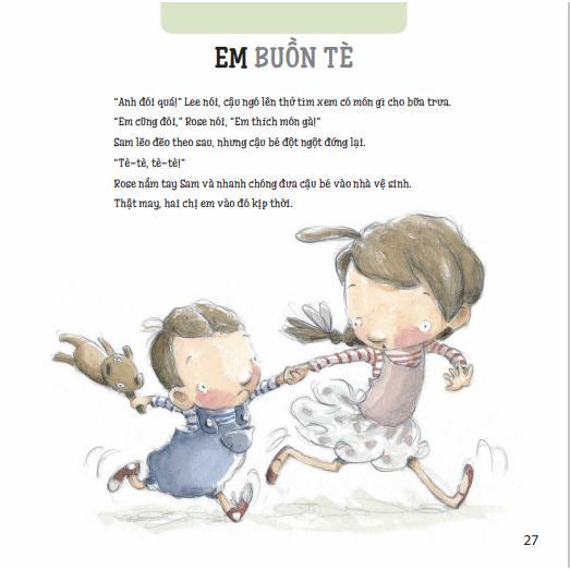 Xoay quanh nhân vật trung tâm là các bạn nhỏ đáng yêu: Lee, Rose, Sam, Lucy, tác giả đưa ra những biện pháp dễ thực hiện, hiệu quả nhằm giúp trẻ chinh phục các thử thách đầu đời. Theo quan điểm của tác giả, không chỉ có các bậc cha mẹ mới có thể hướng dẫn, hỗ trợ con bỏ ti giả, bỏ bỉm, hình thành thói quen giữ vệ sinh v.v. mà chính những bạn nhỏ - trước hết là anh chị em trong gia đình - cũng hoàn toàn có khả năng giúp đỡ lẫn nhau, “làm gương” cho nhau. Việc cô chị chỉ hơn cậu em trai 2-3 tuổi hào hứng khoe: “Chị lớn rồi mà” hay lời khen tặng của anh trai khi thấy em đi ngủ không cầm ti giả sẽ giúp em có động lực phấn đấu hơn. Trên thực tế, những hành động nhỏ lại tác động đáng kinh ngạc đến trẻ.