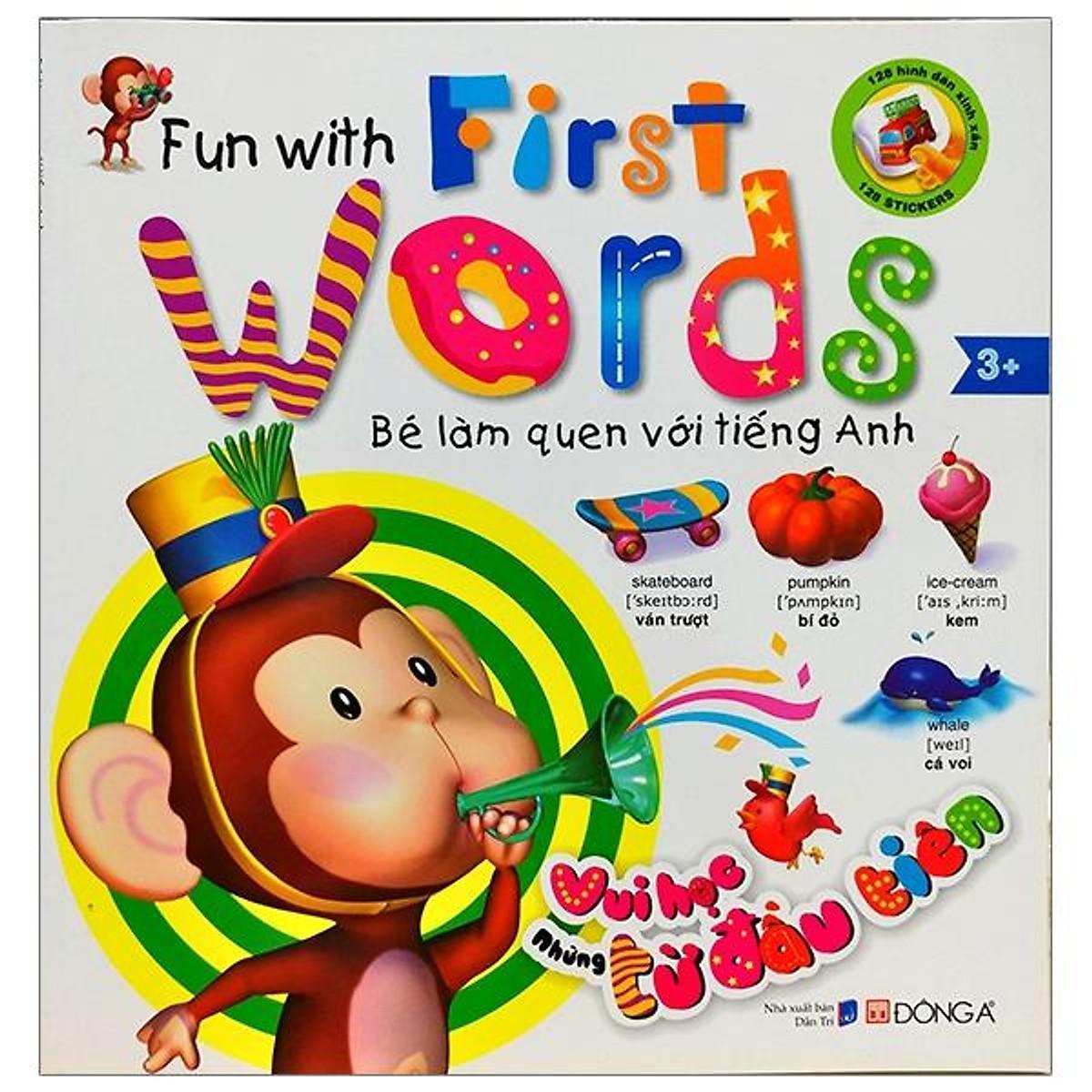 Bé yêu của bạn đang ở vào độ tuổi từ 3-5, ba mẹ muốn bé tập làm quen với tiếng Anh để sớm phát triển khả năng ngoại ngữ? Làm thế nào để biến việc học nặng nề thành những trò chơi vui vẻ dành cho bé? Bộ sách Bé làm quen với tiếng Anh gồm 3 cuốn: First picture words object (Đồ vật quanh em), Fun with First words (Vui học những từ đầu tiên) và Bogie Bear learns words (Gấu Bogie học từ) sẽ giúp bé học tiếng Anh thật dễ dàng. Bogie Bear learns words (Gấu Bogie học từ) là cuốn sách thích hợp cho các bé từ 5 tuổi. Đây là cuốn từ điển Anh – Việt bằng hình giúp phát triển các kỹ năng tiếng Anh cho trẻ. Các từ trong cuốn sách này được chia theo các tình huống và chủ đề trong cuộc sống hằng ngày của gia đình gấu Bogie. Ví dụ, chiếc gối, chiếc chăn hay chiếc đèn bàn là những vật dụng thường có trong phòng ngủ nên được xếp vào nhóm Phòng ngủ, và cứ thế, các em sẽ nhớ lâu hơn. Ngoài ra, mỗi từ tiếng Anh luôn có kèm phần nghĩa tiếng Việt và phần phiên âm giúp các em có thể tự đọc và viết một cách chính xác. Đồng thời, ở cuốn sách này, trẻ còn được học cách sử dụng các động từ thông dụng kết hợp với các danh từ và làm quen với những câu tiếng Anh đơn giản, thông qua đó các em sẽ có những khái niệm đầu tiên về ngữ pháp tiếng Anh cơ bản để từ đó học tiếp ở trình độ cao hơn. Chưa hết, với các minh họa nhiều màu sắc và các nhân vật đáng yêu cũng khiến việc học tiếng Anh trở nên thú vị và thật cuốn hút. Vui học từ đầu tiên: Với bộ sách này bé sẽ được làm quen với Mony và Bunji - hai bạn nhỏ sẽ giúp các bé nhận biết các từ tiếng Anh chỉ đồ vật, sự vật quen thuộc trong cuộc sống hàng ngày. Lật giở mỗi trang sách, Mony và Bunji sẽ lần lượt giới thiệu cho các bé các từ cơ bản theo từng lĩnh vực: ăn uống, rau quả, hoa, con vật, thể thao, trò chơi, hình dạng, nhạc cụ, số đếm… Những từ này được in với cỡ chữ to dễ đọc và được chia thành 14 nhóm kèm theo 128 hình minh họa đẹp, sinh động giúp bé dễ dàng ghi nhớ từ vựng. Bên cạnh Những từ thú vị, bé còn được tham gia Những trò chơi bổ ích thông qua việc tập suy nghĩ và nhận biết sự vật bằng việc trả lời các câu hỏi hay chơi dán hình với các hình dán ngộ nghĩnh được sắp xếp ở hai trang đầu cuốn sách.Đặc biệt, để việc sử dụng bộ sách được thuận tiện, hiệu quả, ba mẹ sẽ tìm thấy những hướng dẫn vô cùng hữu dụng ở phần Lời khuyên dành cho phụ huynh với các chỉ dẫn về cách thức dạy bé học, bé đọc và phần Phát âm để bé hiểu cách đọc, cách nhấn mạnh từ ra sao trước các ký hiệu (') hay (). Sách dành cho các bé từ 3 tuổi trở lên. First picture words object (Đồ vật quanh em) bao gồm 160 hình minh họa cho các từ song ngữ Anh – Việt kèm theo phiên âm chỉ những đồ vật quen thuộc trong cuộc sống hằng ngày. Những từ này được xếp vào 20 nhóm có chung một số đặc điểm để giúp bé đọc tên và học thuộc một cách dễ dàng như: Phòng tắm,Phụ kiện, Phòng bếp, Tại bàn ăn, Phòng khách, Đồ chơi, Đồ điện gia dụng, Đồ vệ sinh, Dụng cụ, Dụng cụ làm vườn, Phương tiện giao thông, Du lịch, Đi học, Lớp học, Sân chơi, Dụng cụ thể thao, Nhạc cụ… Bên cạnh Những từ thú vị, bé còn được Chơi dán hình với các hình dán ngộ nghĩnh được sắp xếp ở hai trang đầu cuốn sách. Ba mẹ có thể hướng dẫn bé chọn hình và dán với từ tương ứng để ôn lại và tăng cường kỹ năng ghi nhớ từ vựng. Đặc biệt, để việc sử dụng bộ sách được thuận tiện, hiệu quả, ba mẹ sẽ tìm thấy những hướng dẫn vô cùng hữu dụng ở phần Lời khuyên dành cho phụ huynh với các chỉ dẫn về cách thức dạy bé học, bé đọc và phần Phát âm để bé hiểu cách đọc, cách nhấn mạnh từ ra sao trước các ký hiệu (') hay (). Sách dành cho các bé từ 3 tuổi trở lên.