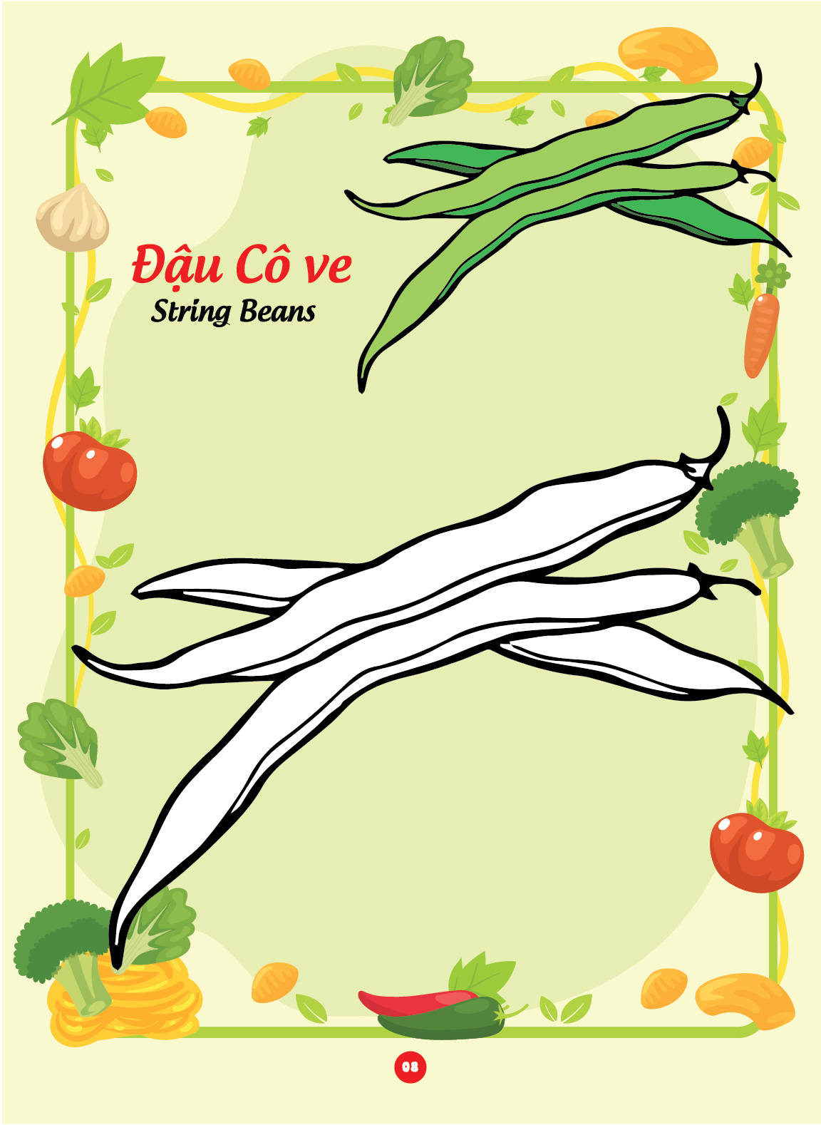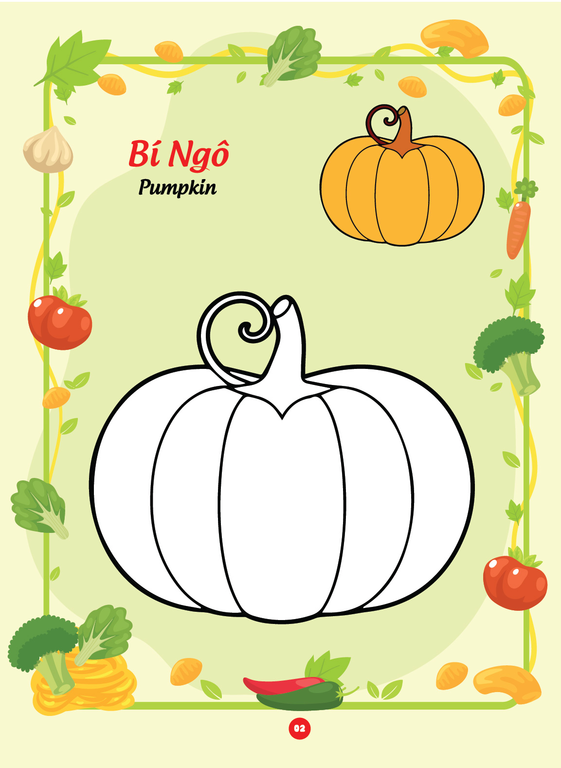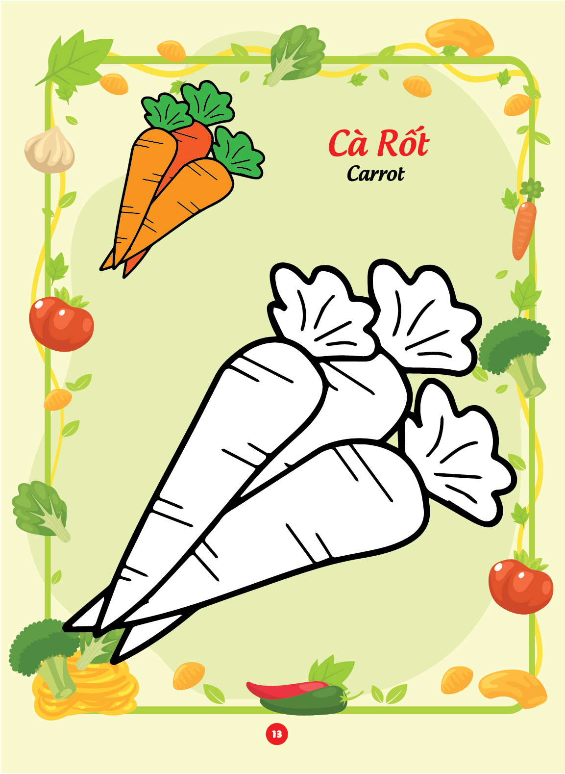 Sách tô màu "Bé tô màu và học tiếng Anh theo chủ đề - Các loại rau củ" là một tài liệu giáo dục thú vị và bổ ích dành cho trẻ em. Với những hình ảnh sinh động và dễ thương liên quan đến Các loại rau củ, cuốn sách không chỉ giúp trẻ em phát triển khả năng sáng tạo thông qua việc tô màu mà còn giúp các em làm quen với từ vựng tiếng Anh liên quan đến chủ đề này.