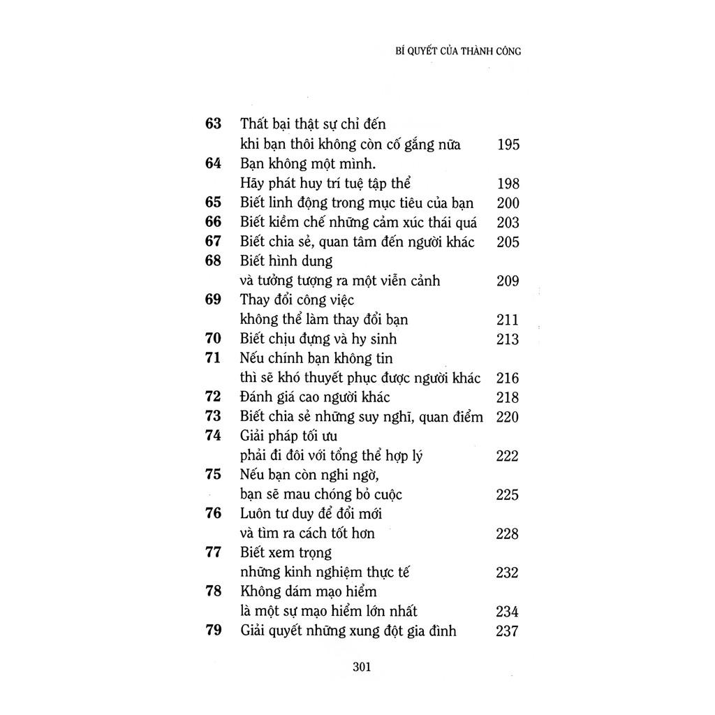 Bí quyết của thành công không phải là những gì xa lạ và khó thực hiện, đòi hỏi phải rèn luyện công phu trong nhiều năm trời mới có được. Cuốn sách không đưa ra những điều cao siêu hay đặt ra những mục tiêu lớn lao vượt khỏi khả năng của mỗi người. Mà chỉ đơn giản là những thái độ sống, những suy nghĩ tích cực, những điều khuyên thực tế mà bạn có thể áp dụng ngay vào lúc này – bất kể hoàn cảnh và tình trạng hiện có của bạn.