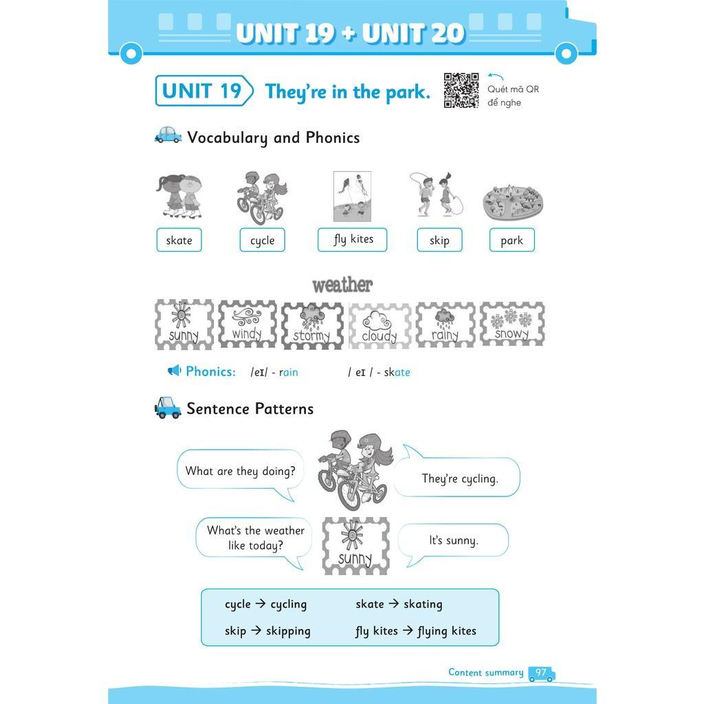 Big 4 Bộ Đề Tự Kiểm Tra 4 Kỹ Năng Nghe – Nói – Đọc – Viết (Cơ Bản và Nâng Cao) Tiếng Anh Lớp 3 viết theo chuẩn khung chương trình mới của Bộ Giáo Dục và Đào Tạo giúp các em học sinh lớp 3 củng cố và phát triển toàn diện các kỹ năng: Nghe – Nói – Đọc – Viết Tiếng Anh. Cuốn sách thích hợp cho giáo viên sử dụng như tài liệu giảng dạy tham khảo hoặc phụ huynh - người muốn tìm tài liệu kèm con học Tiếng Anh tại nhà. Nội dung của cuốn sách gồm hệ thống bài tập luyện 4 kỹ năng cơ bản giúp các em em ôn tập kiến thức trên lớp và bài tập mở rộng nâng cao để các em rèn luyện và làm quen với các kì kiểm tra đánh giá. Cứ hai bài sẽ có 2 bài kiểm tra, tất cả các bài kiểm tra đều được thiết kế theo quy định thông tư mới nhất về kiểm tra môn Tiếng Anh tiểu học. Cấu trúc cuốn sách gồm 5 phần: Vocabulary and Phonetics Listening Reading Writing Speaking Điểm đặc biệt của cuốn sách là tính hiện đại và sự tiện dụng khi các em không cần sử dụng CD để có được bài nghe. Bộ sách tích hợp mã QR code và mã Code giúp các em dễ dàng có được file nghe chi tiết với chiếc Smartphone. Với bộ sách bố mẹ sẽ giúp bé tiến bộ từng ngày, tự tin với khả năng ngôn ngữ của mình khi ôn luyện Tiếng Anh bởi các bài tập về 4 kỹ năng: Nghe – Nói – Đọc – Viết được liên kết với nhau theo logic của bài học.