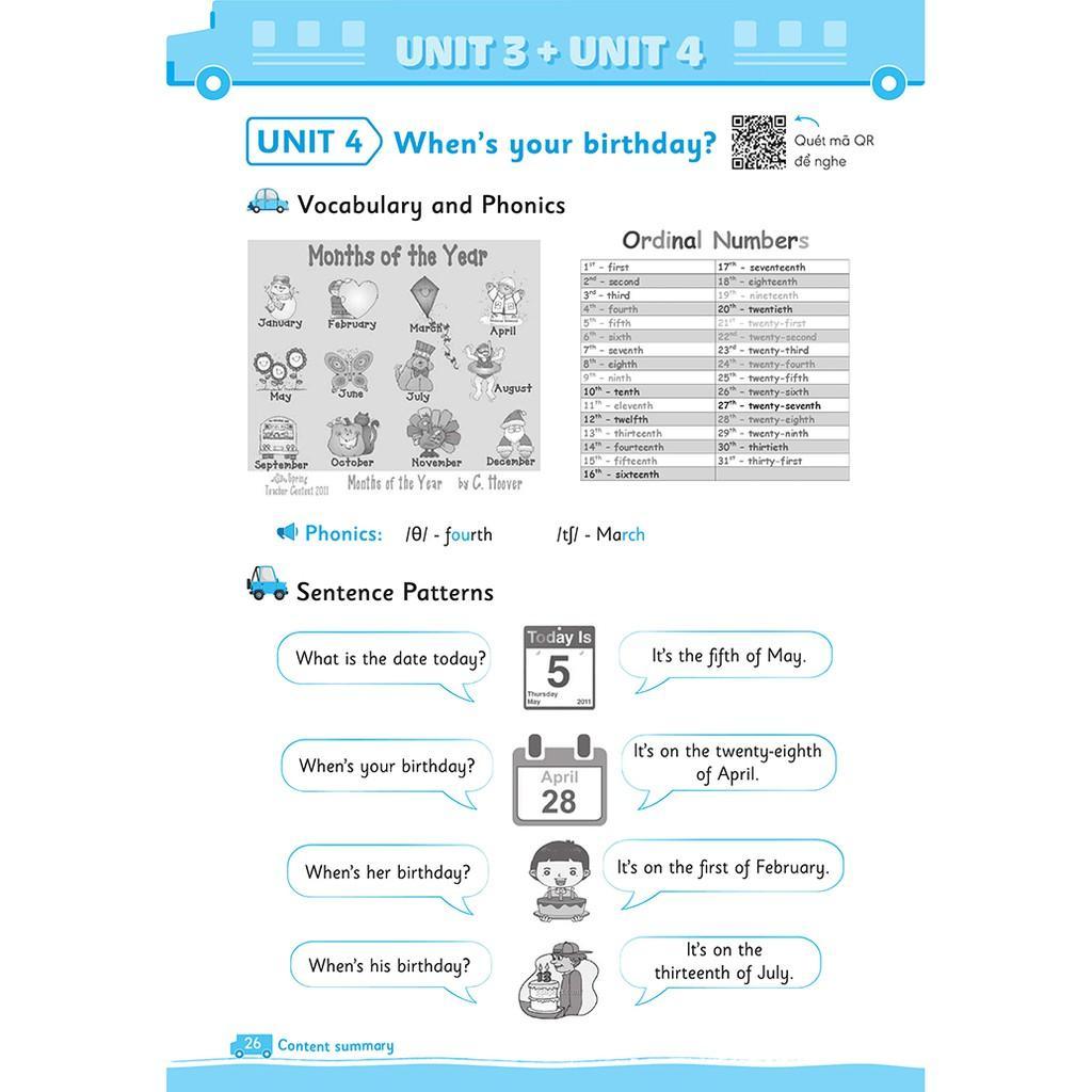 Cứ hai bài sẽ có 2 bài kiểm tra, tất cả các bài kiểm tra đều được thiết kế theo quy định thông tư mới nhất về kiểm tra môn Tiếng Anh tiểu học.