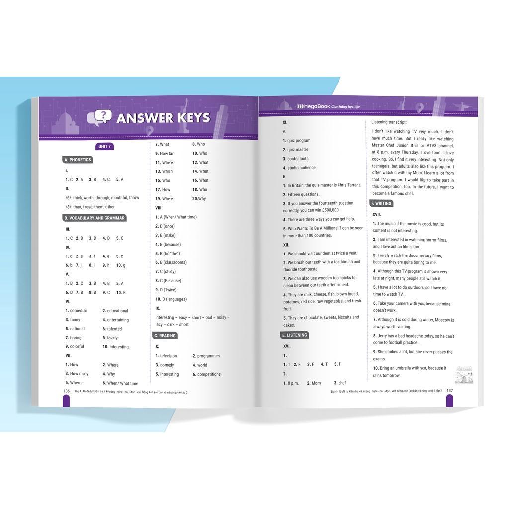 MegaBook hi vọng rằng bộ sách Big 4 bộ đề tự kiểm tra 4 kỹ năng Nghe - Nói - Đọc - Viết tiếng Anh sẽ làm tăng thêm sự tự tin của các em học sinh với khả năng tiếng Anh của bản thân.