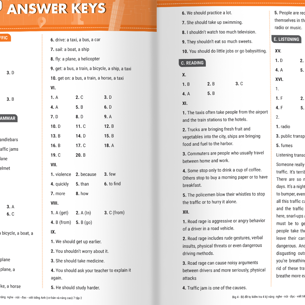 Bộ sách Big 4 - Bộ đề Tự kiểm tra 4 kỹ năng NGHE – NÓI – ĐỌC – VIẾT được biên soạn theo khung chương trình mới của Bộ Giáo dục và Đào tạo nhằm giúp các em học sinh Trung học cơ sở được củng cố và phát triển toàn diện các kỹ năng nghe, nói, đọc, viết tiếng Anh.
