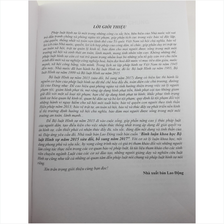 Giới thiệu sách: BÌNH LUẬN KHOA HỌC PHẦN CÁC TỘI PHẠM BỘ LUẬT HÌNH SỰ NĂM 2015 đã được sửa đổi năm 2017 BÌNH LUẬN KHOA HỌC PHẦN CÁC TỘI PHẠM BỘ LUẬT HÌNH SỰ NĂM