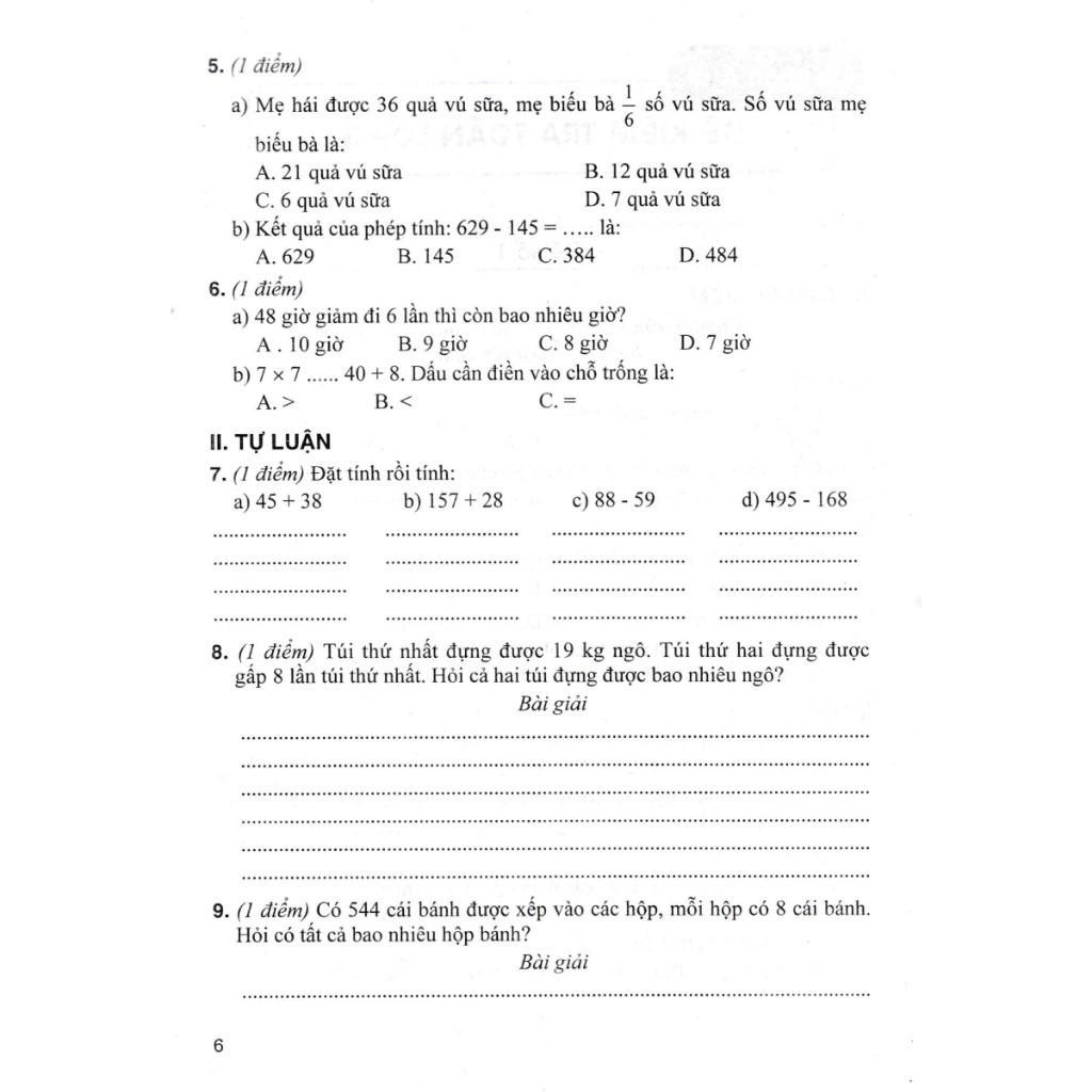 Từ năm học 2022–2023, các em học sinh lớp 3 được học sách giáo khoa theo Chương trình giáo dục phổ thông mới. Mục tiêu của chương trình mới là phát triển năng lực, phẩm chất của học sinh. Do vậy, nhằm hỗ trợ quý thầy cô và các bậc phụ huynh có thêm tài liệu hướng dẫn các em học sinh học tốt môn Toán lớp 3, chúng tôi đã tổ chức biên soạn cuốn sách: BỘ ĐỀ KIỂM TRA MÔN TOÁN LỚP 3