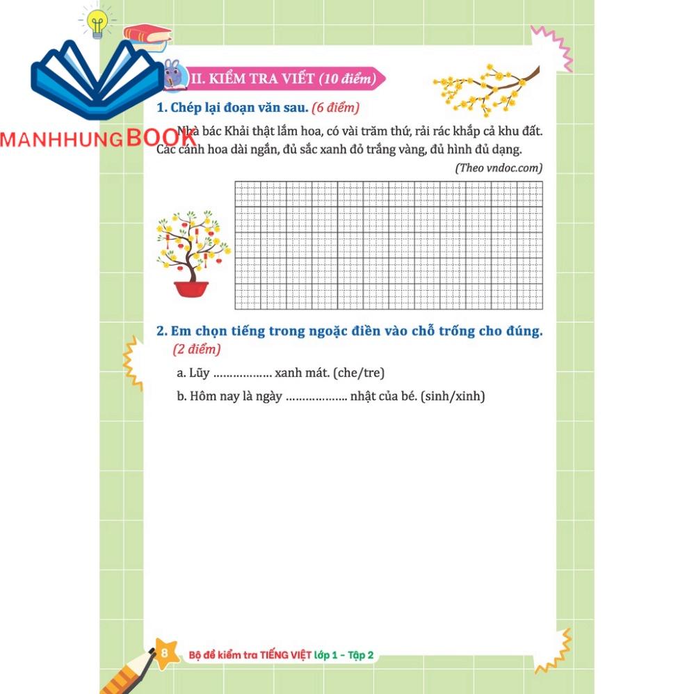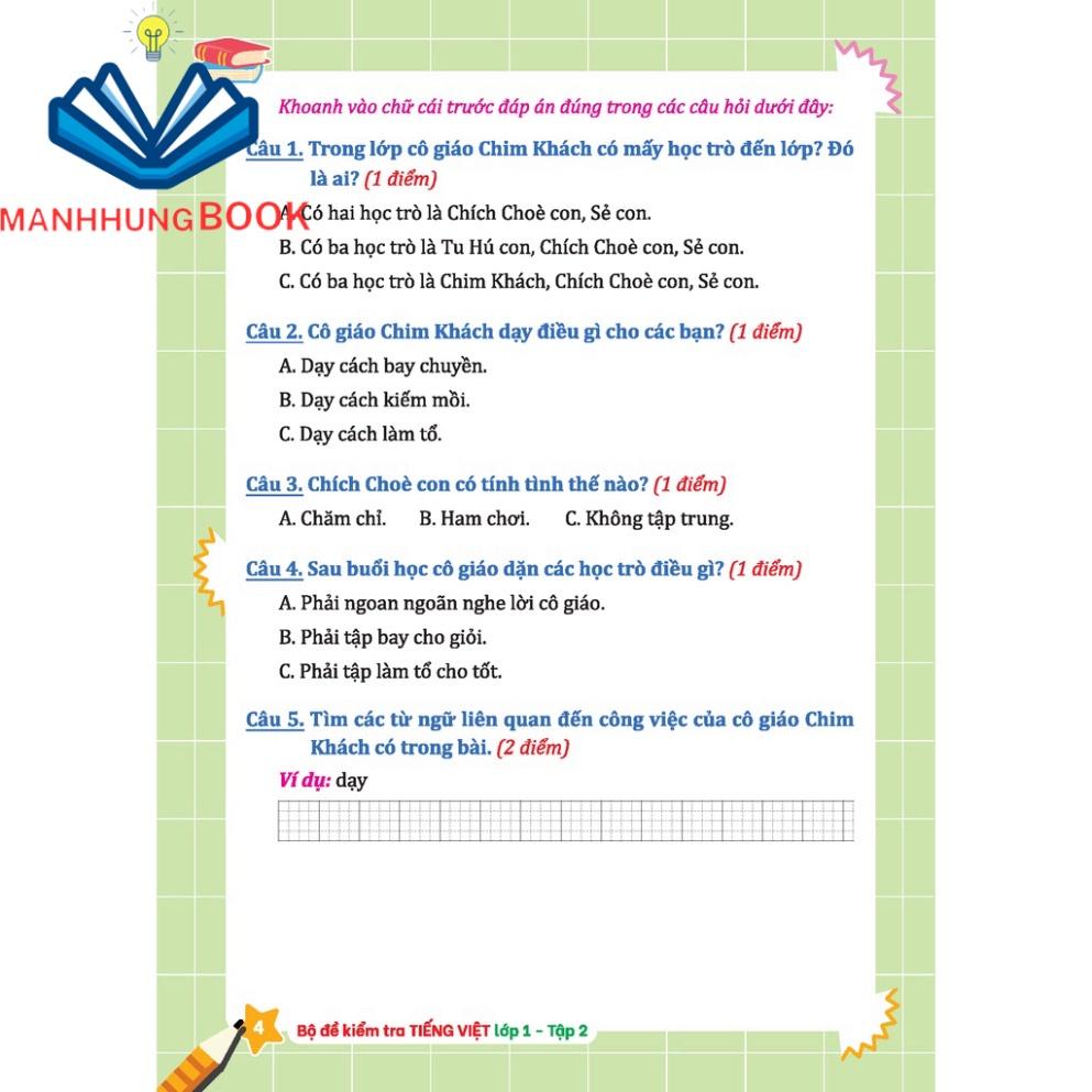 1 : Sách - Phiếu Ôn Luyện Cuối Tuần Tiếng Việt lớp 1 tập 1 (Cánh Diều) Sách là tài liệu cung cấp các đề kiểm tra giúp giáo viên, phụ huynh đánh giá được