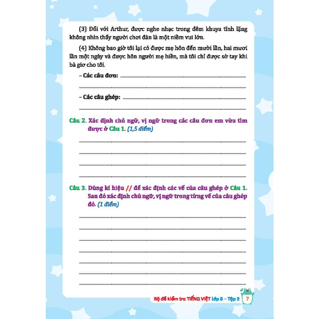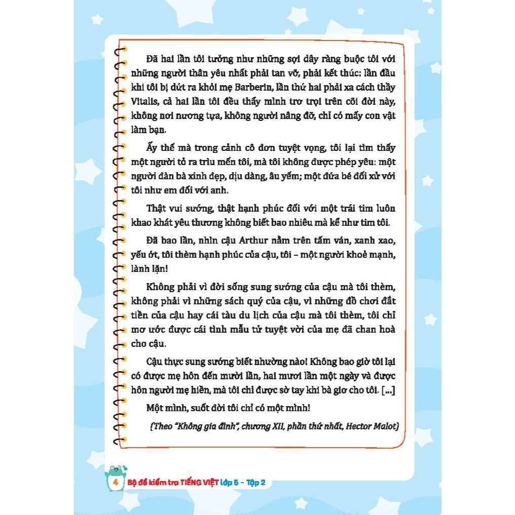 Trong mỗi đề, tác giả cố gắng khai thác các dạng bài tập từ bài đọc hiểu, giúp các em khi làm bài thấy được sự liên kết chặt chẽ giữa các phần: Đọc hiểu – Luyện từ và câu – Tập làm văn. Học sinh sẽ có cách nhìn tổng quát hơn trong việc giải quyết các yêu cầu, vì các câu hỏi sẽ xoay quanh nội dung của bài đọc.