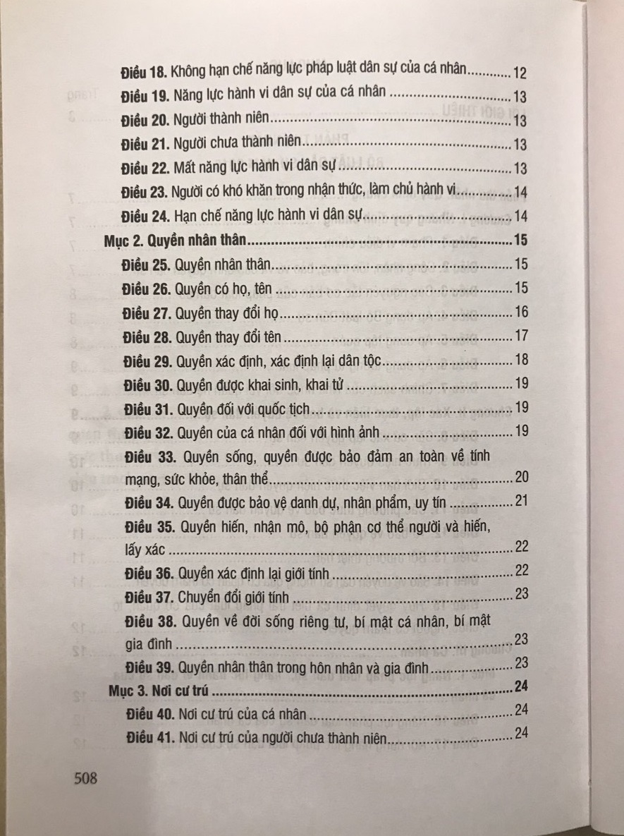 Bộ Luật Dân Sự (DH) Nội dung sách bao gồm các văn bản quy phạm pháp luật quy định về địa vị pháp lý, chuẩn mực pháp lý cho cách