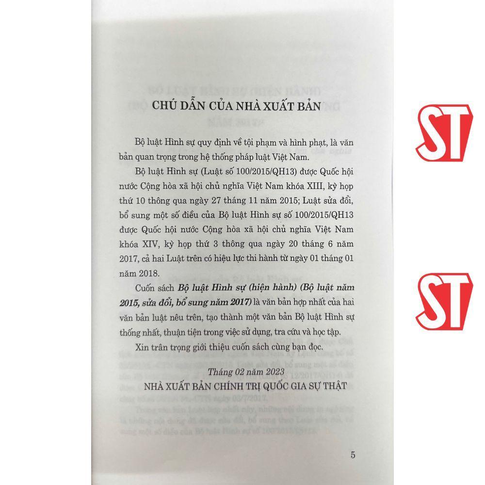 ✨Sách - Bộ Luật Hình Sự (Hiện Hành) (Bộ Luật Năm 2015, Sửa Đổi, Bổ Sung Năm 2017) - NXB Chính Trị Quốc Gia