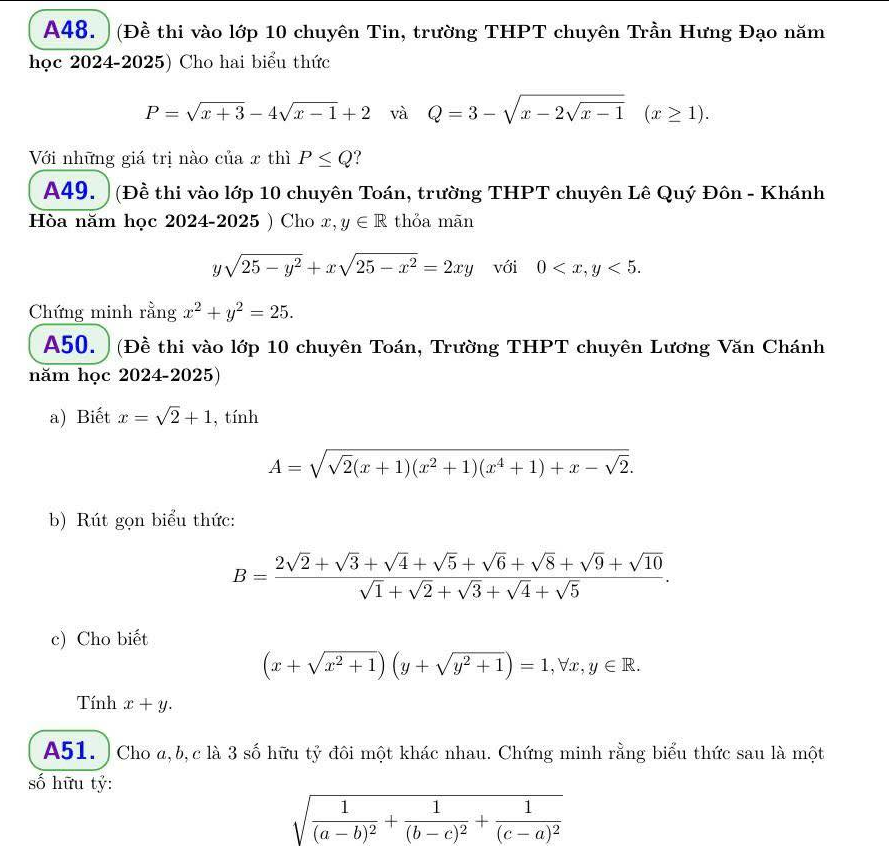 LT 10 Chuyên - CĐ Đại Số - Bài 1: Biến đổi đồng nhất
