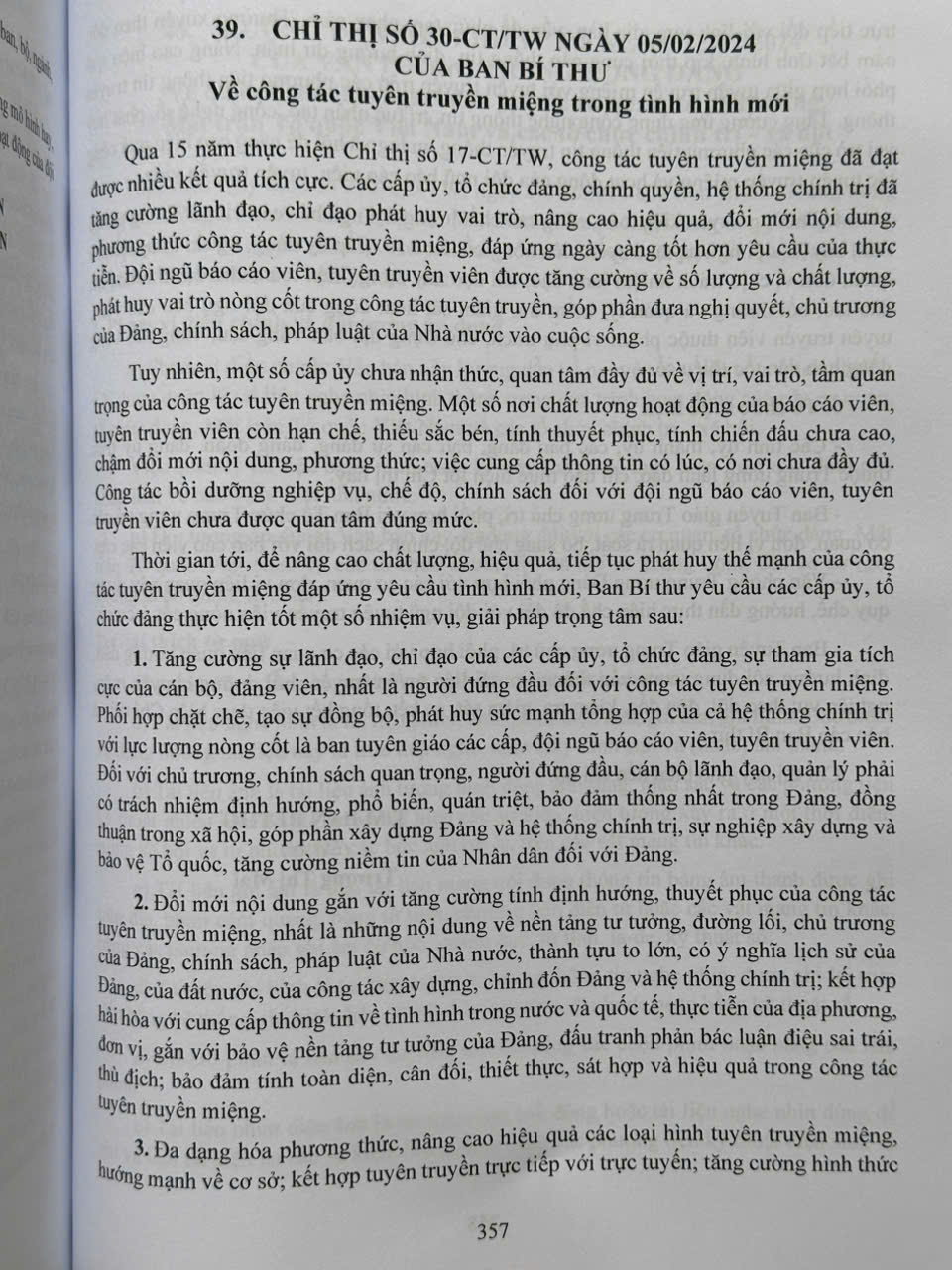 Nhận thức được tầm quan trọng cũng như tính cấp thiết của nhiệm vụ nâng cao năng lực lãnh đạo của Đảng nhằm đáp ứng yêu cầu của sự nghiệp đổi mới đất nước, thời gian qua, nhiều quy định, hướng dẫn của Ban Bí thư, Ban Chấp hành Trung ương, Ban Tuyên giáo Trung ương đã được ban hành như: