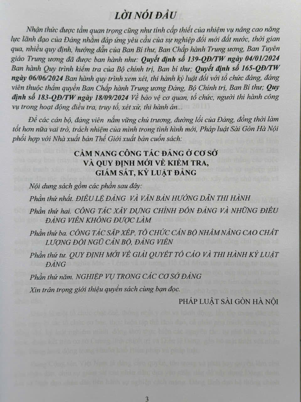 Sách Cẩm Nang Công Tác Đảng Ở Cơ Sở và Quy Định Mới Về Kiểm Tra Giám Sát, Kỷ Luật Đảng Tác giả: Bích Phương Nhà xuất bản: Thế giới Năm xuất bản: Tháng 12/2024
