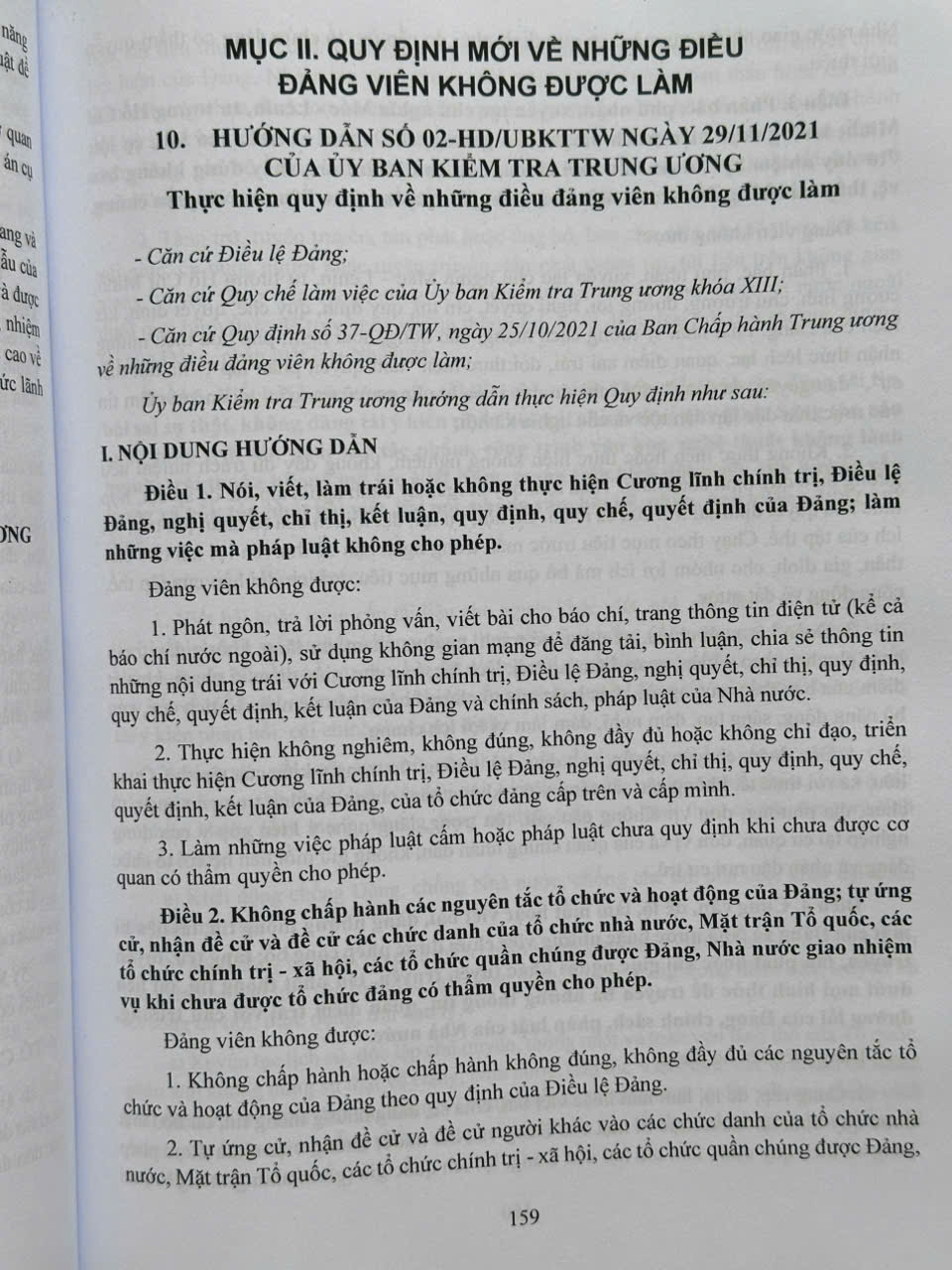Phần thứ hai. CÔNG TÁC XÂY DỰNG CHỈNH ĐỐN ĐẢNG VÀ NHỮNG ĐIỀU ĐẢNG VIÊN KHÔNG ĐƯỢC LÀM