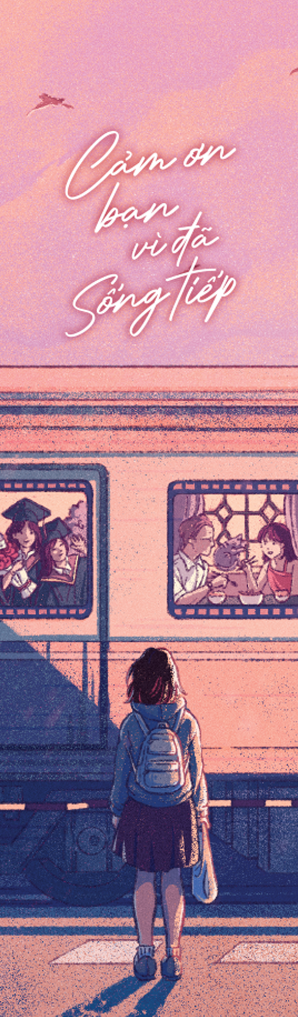 Nếu bạn từng bước qua hoặc đang loay hoay giữa những ngày “chệch quỹ đạo” ấy, hãy thử mở “Cảm ơn bạn vì đã sống tiếp”. Cuốn sách này chẳng chứa đầy các công thức chữa lành, không hứa sẽ xoa dịu mọi tổn thương. Nó chỉ là một lời thì thầm chân thành và đầy dịu dàng gửi đến bạn: “Cảm ơn vì đã không từ bỏ.”