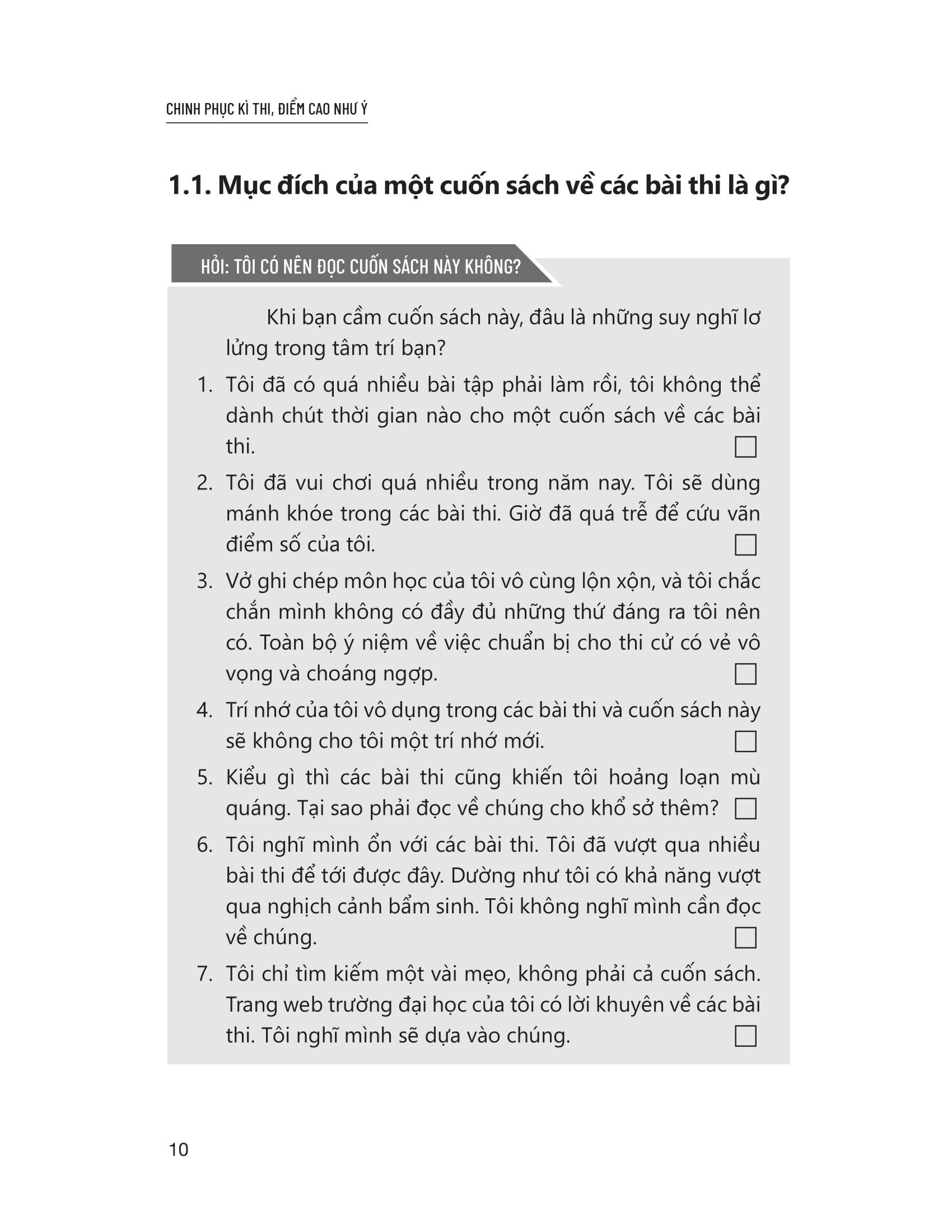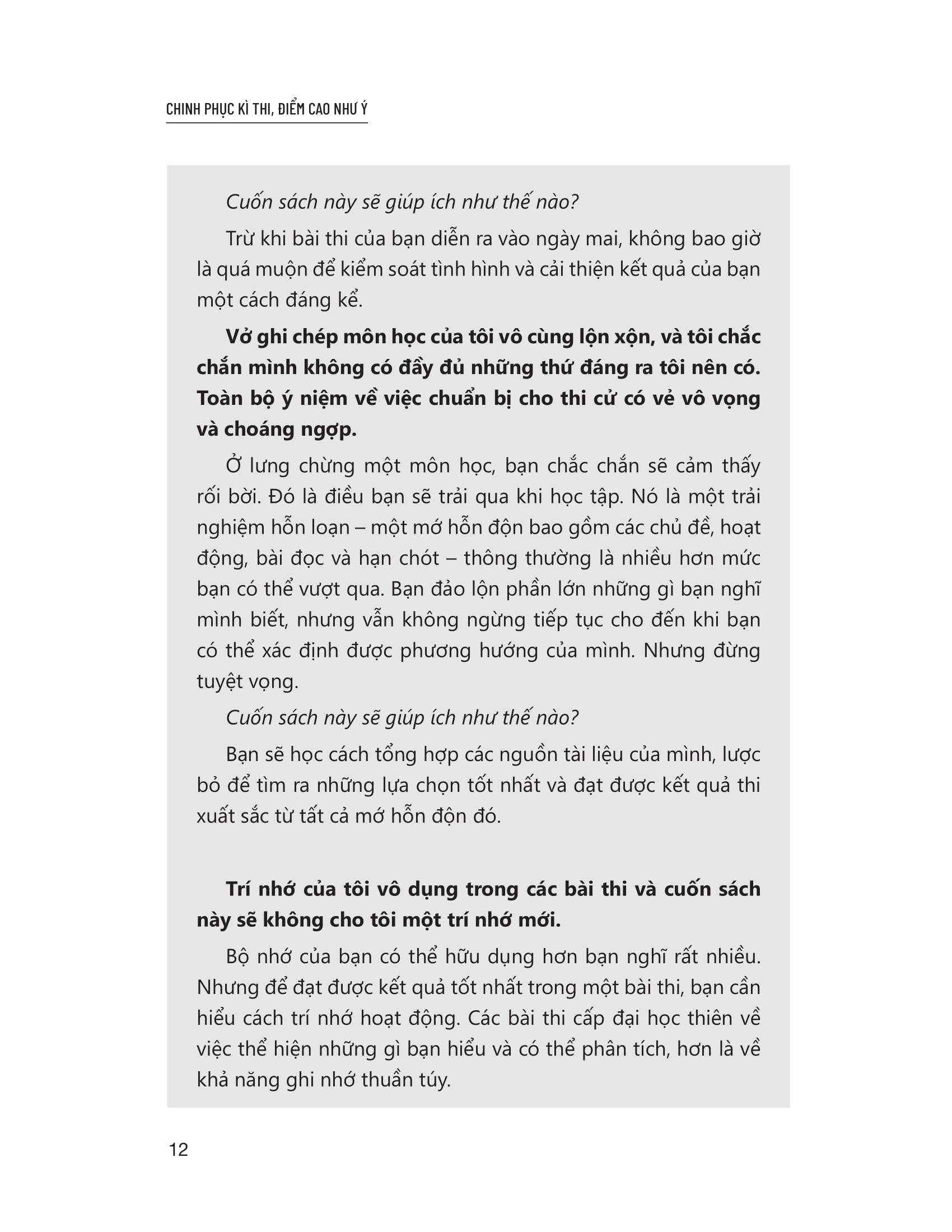 Bên cạnh đó, cuốn sách sẽ giúp các bạn sinh viên xây dựng hiểu biết về các dạng bài thi thường gặp tại đại học, đồng thời hướng dẫn sinh viên lên chiến lược, lập kế hoạch ôn tập và tham dự kì thi sao cho đạt kết quả tốt nhất.