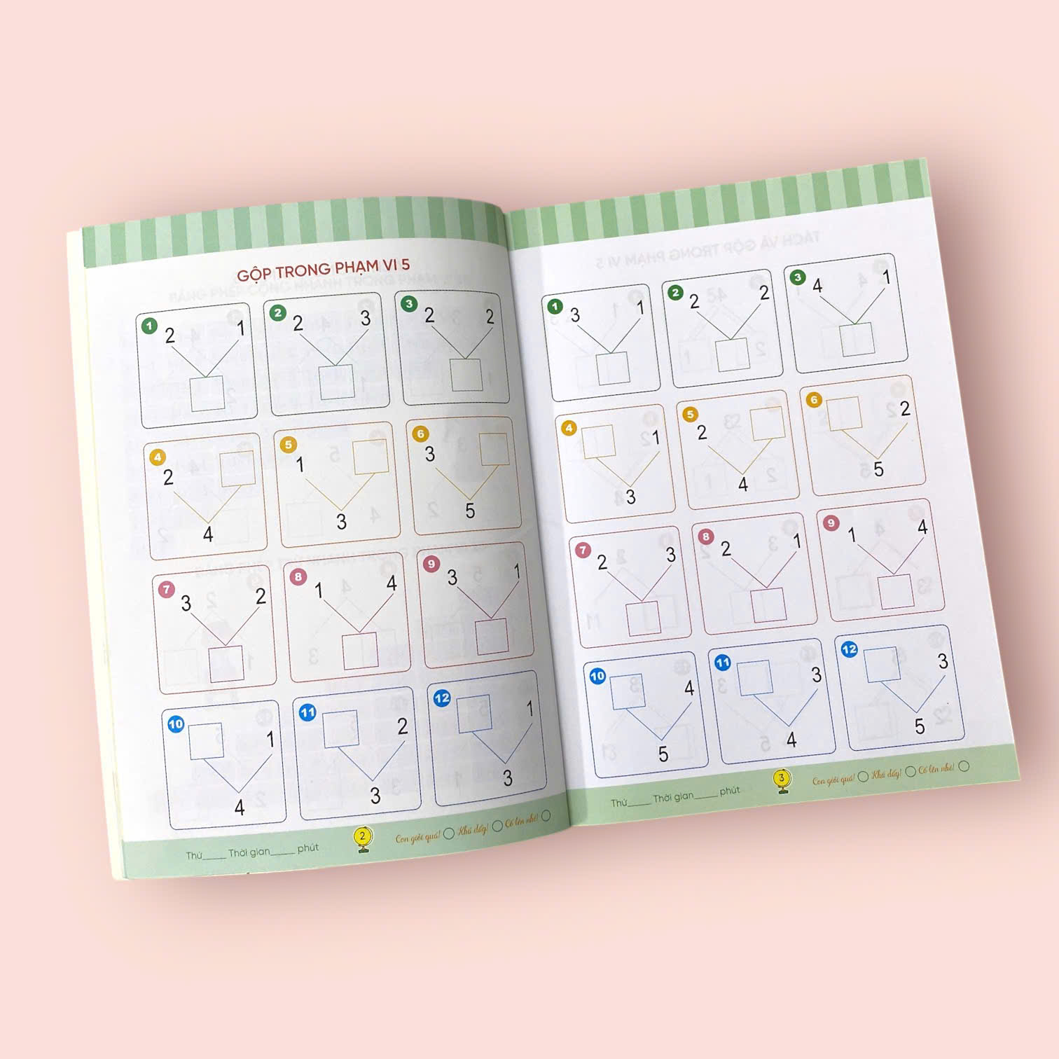 Bộ sách được thiết kế để giúp các bé nắm vững những kiến thức toán học cơ bản, bao gồm: