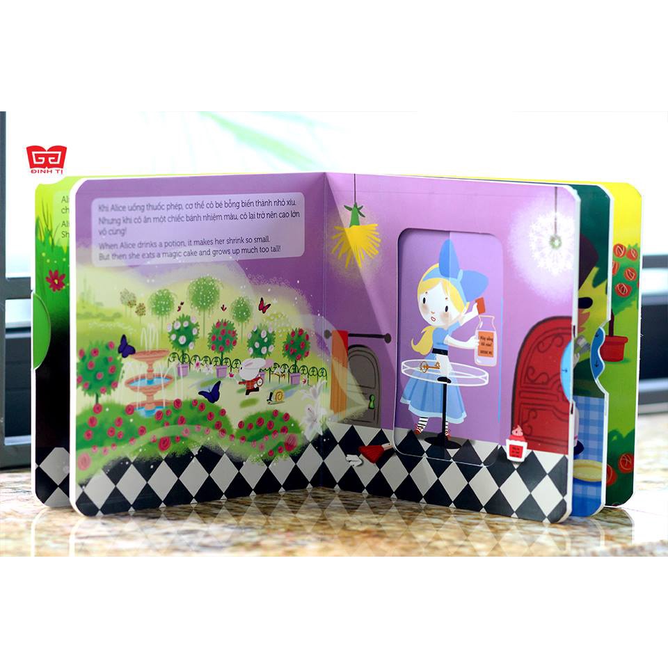"Sách tương tác - Sách chuyển động - First explorers - Alice In Wonderland - Alice Ở Xứ Sở Diệu Kỳ" là cuốn sách đặc biệt