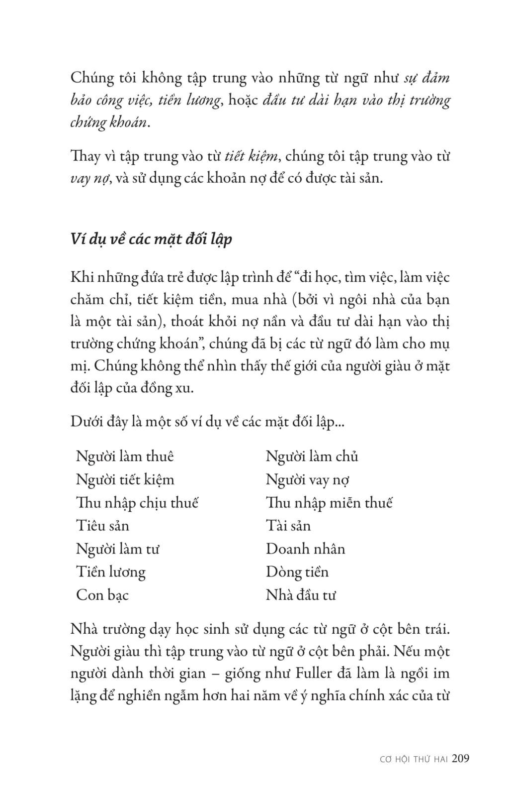 Quyển sách này viết cho những cá nhân nhận ra đã đến lúc phải làm gì đó khác đi. Nó dành cho những ai nhận ra việc tiết kiệm tiền là điên rồ trong khi các ngân hàng đang in hàng nghìn tỷ đô-la; việc đầu tư dài hạn vào thị trường chứng khoán sắp sụp đổ cũng là điên rồ; và việc quay lại trường học cũng điên nốt, vì nhà trường đâu có dạy gì nhiều về tiền bạc.