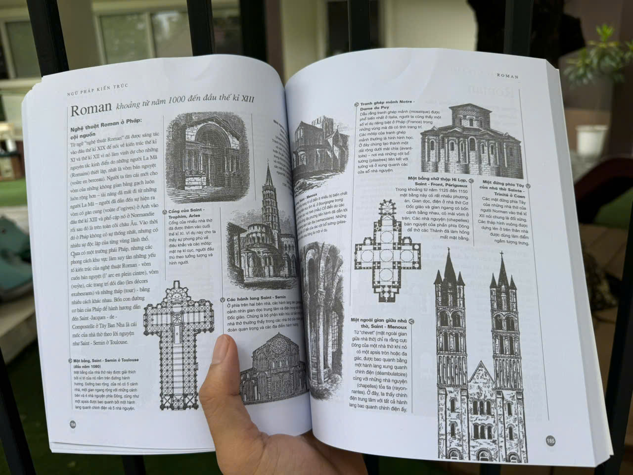 Cuốn sách này bao gồm một tập từ vựng các thuật ngữ với định nghĩa ngắn gọn về những yếu tố được trình bày và được phân tích trong lời văn nên có thể hiểu được nhanh nhất. Hơn nữa, cả một phần cuốn sách giới thiệu mười yếu tố mà tất cả các nước hoặc hầu như tất cả các nước đều sử dụng trong kiến trúc của mình, đó là mái vòm, cột, tháp, cuộn và dây cuốn, cửa đi và cửa chính, cửa sổ, trán tường và hồi nhà, mái nhà, vòm, cầu thang.