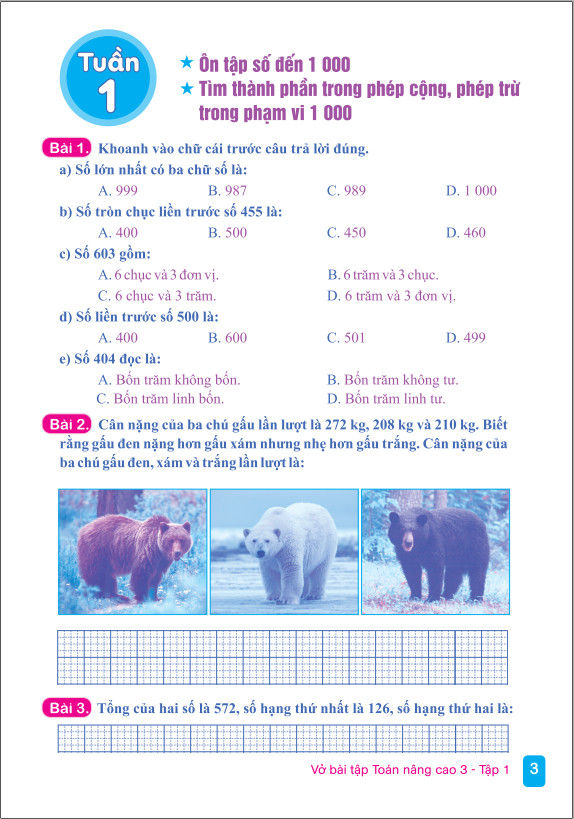 Vở Bài Tập Toán Nâng Cao 3 được biên soạn theo Chương trình tiểu học mới. Là tài liệu tham khảo giúp học sinh có điều kiện rèn luyện kiến thức và kĩ năng học tập môn Toán nâng cao theo chương trình định hướng phát triển năng lực.