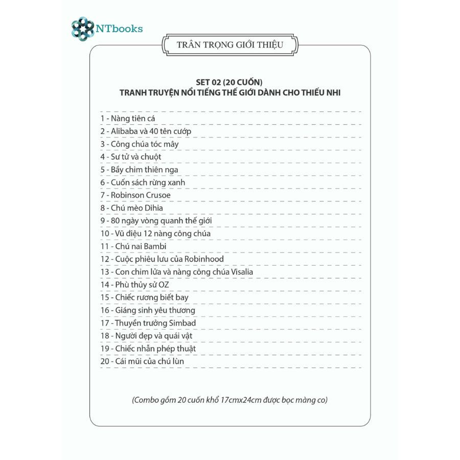 Sách - Truyện Cổ tích - Truyện kể mầm non - Ngụ Ngôn Dành Cho Thiếu Nhi (Bộ 20 Cuốn)---------------------------------------------------------- Sách giữ vai trò quan trọng đối với con người, đặc biệt...