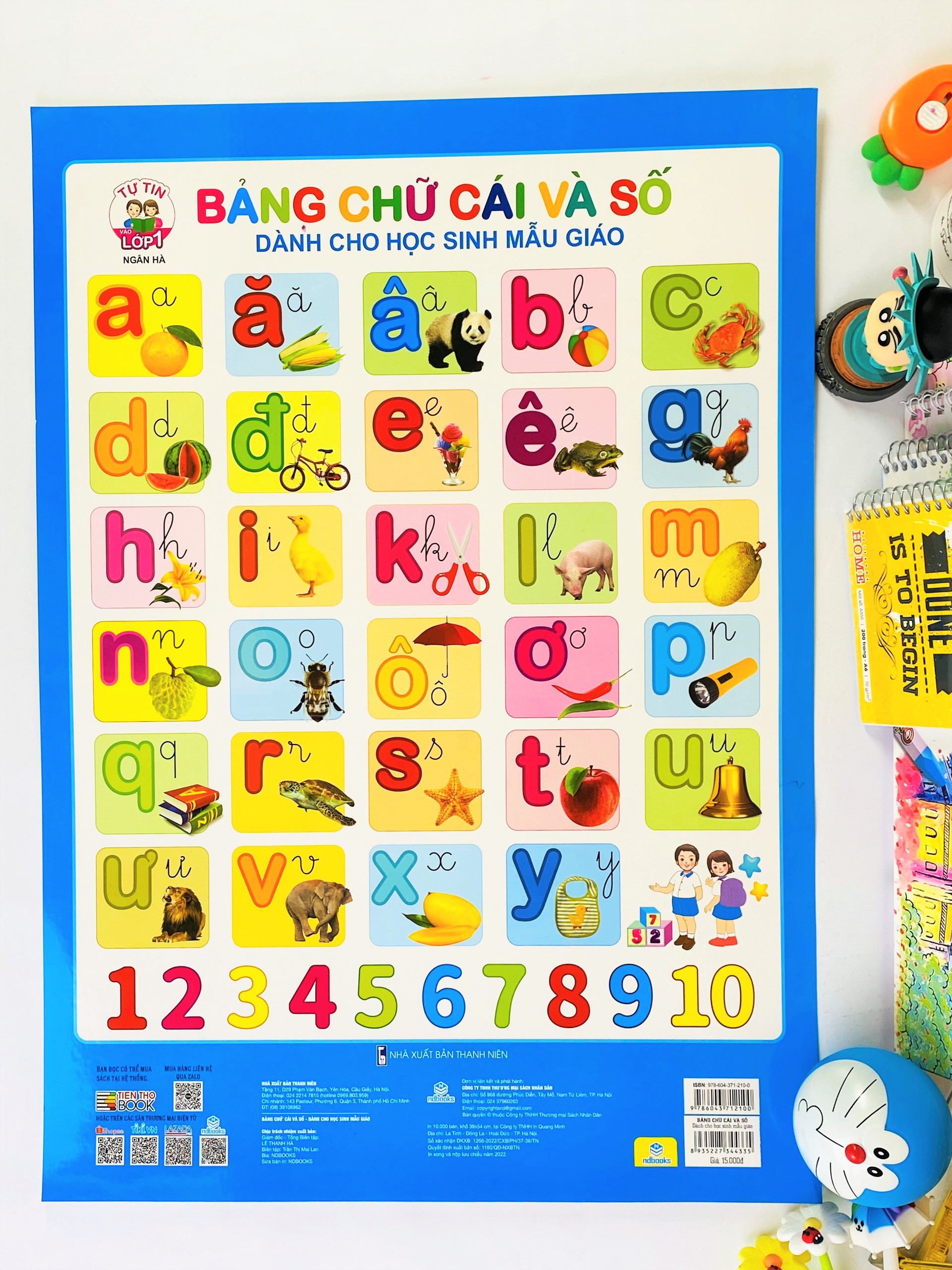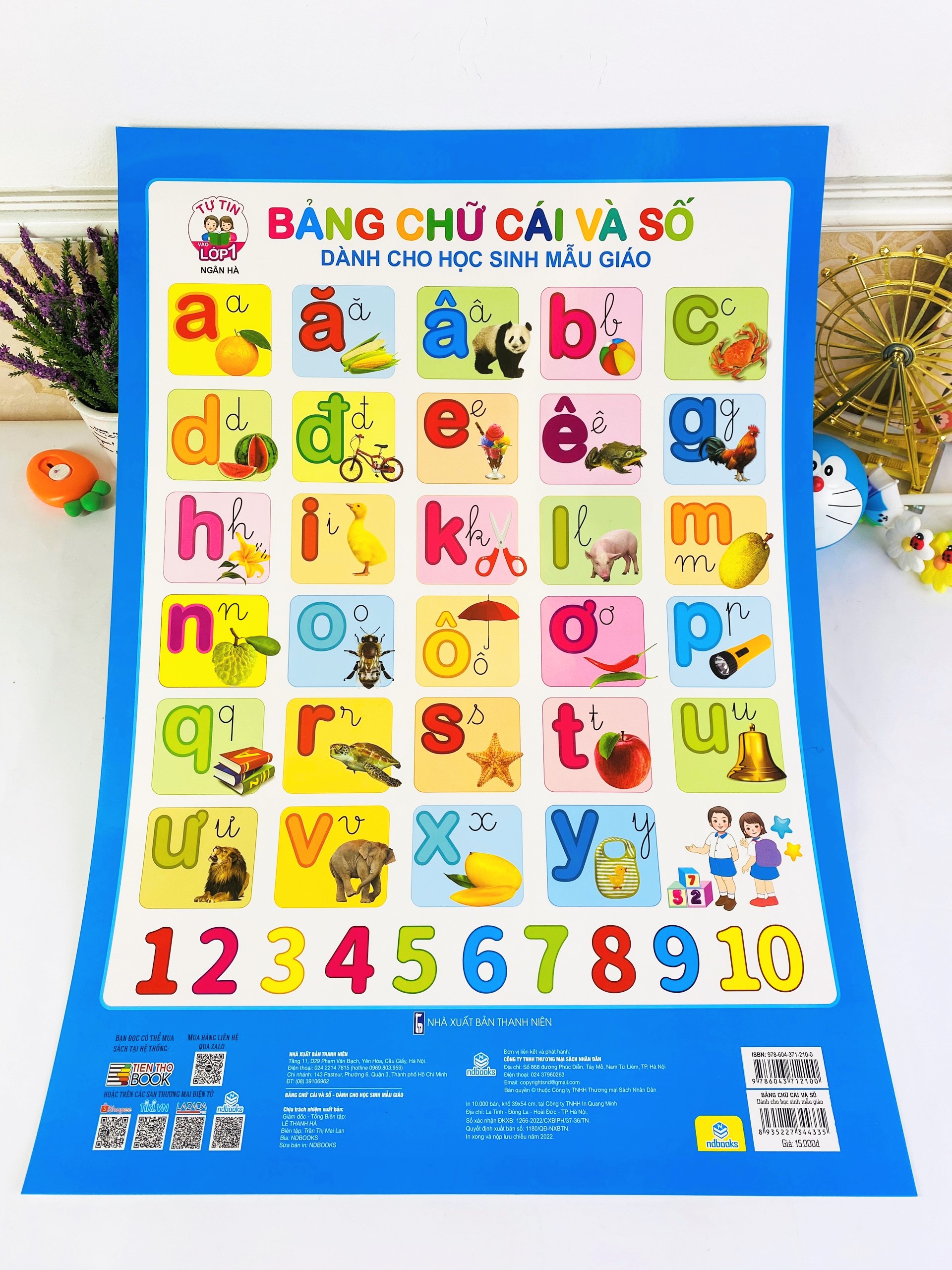 ✨Sách - Combo 5 tờ Tranh Bảng Chữ Cái Và Số (có nẹp) - ndbooks