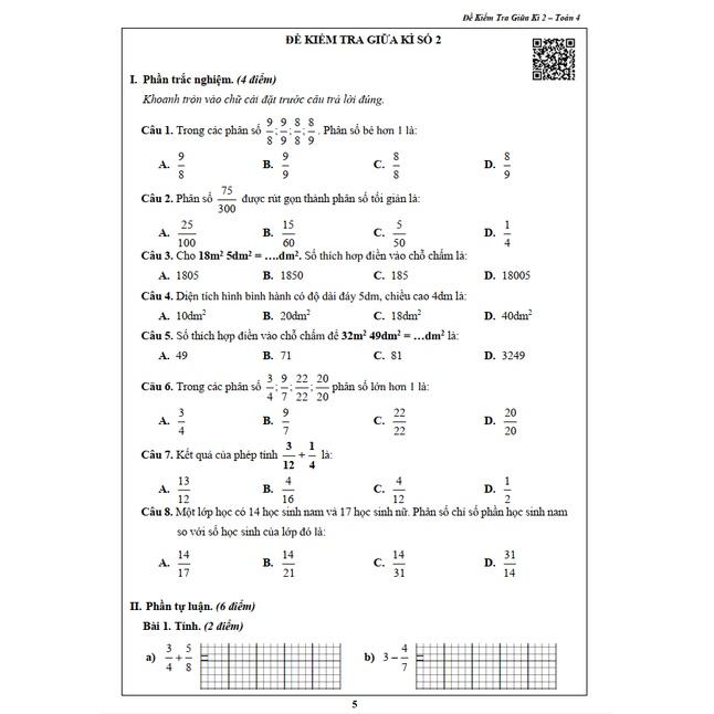 - Đề kiểm tra cả năm của lớp 4 gồm cả 2 kì