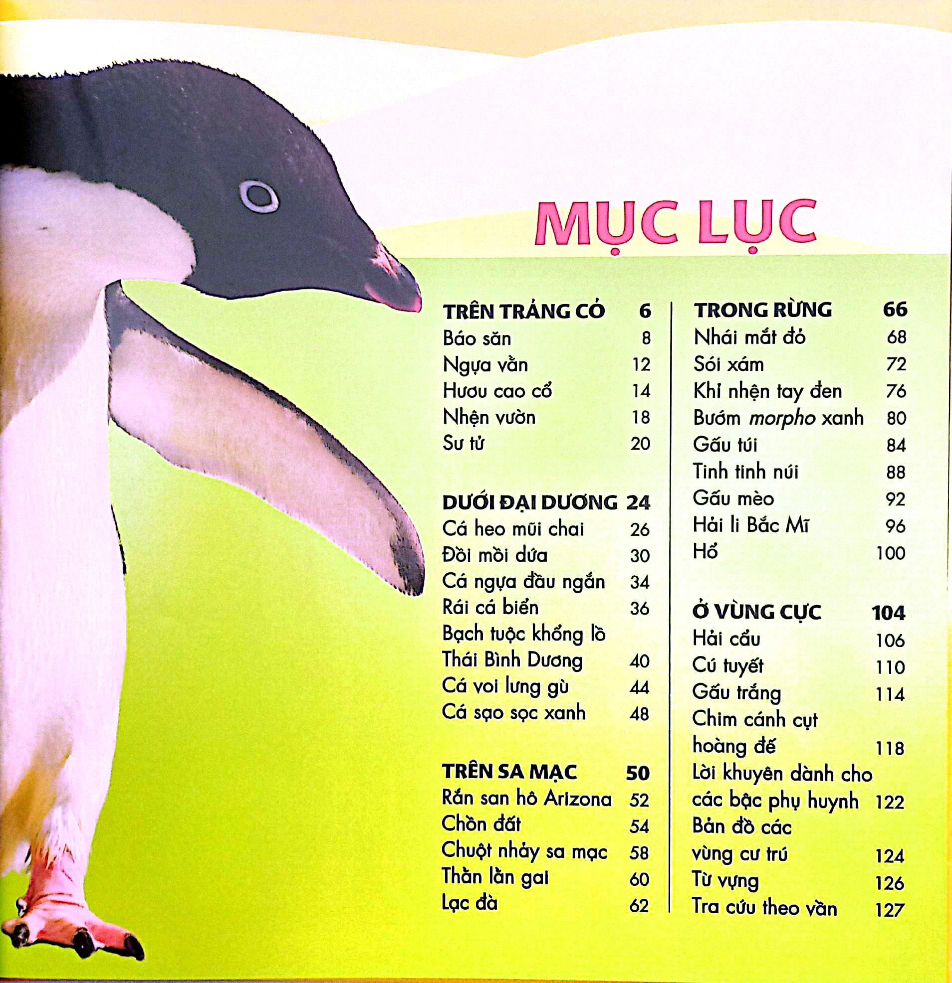 Cuốn Sách Lớn Đầu Tiên Của Tớ - Động Vật (Tái Bản 2024) GẤU TRẮNG, CHIM CÁNH CỤT, SƯ TỬ, hươu cao cổ, cá ngựa, ếch nhái, bươm bướm và nhiều con vật nữa... Những trang sách đầy lí thú giúp bạn đọc nhỏ tuổi làm quen với hơn 30 con vật và cuộc sống kì lạ của chúng trong thiên nhiên. TRONG SÁCH, CÁC EM SẼ TÌM THẤY: