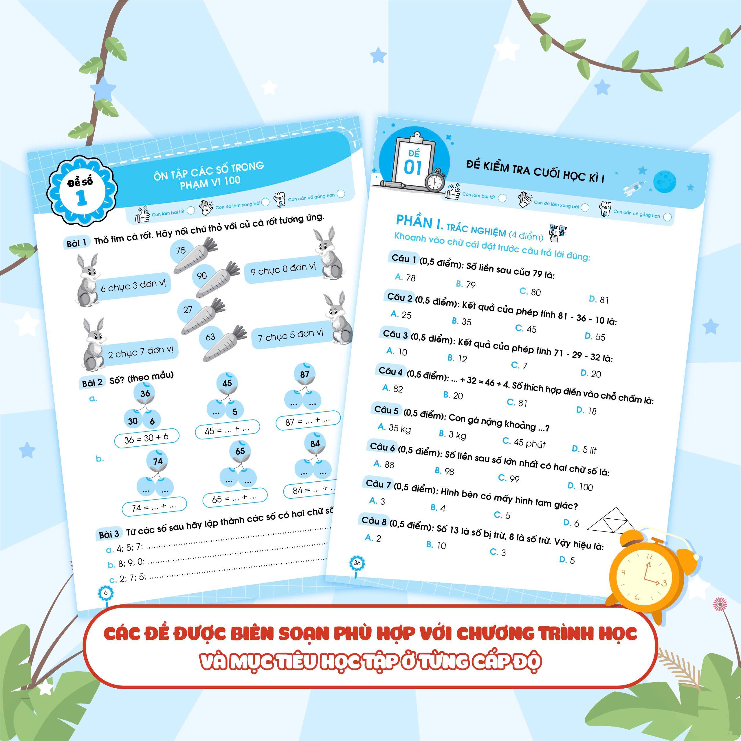 Mỗi cuốn sách cung cấp 5 đề kiểm tra cuối học kì để kiểm tra, đánh giá kiến thức tổng hợp của học sinh.