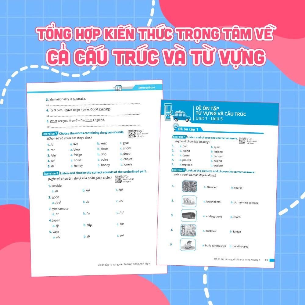 ✨Sách - Đề Ôn Tập Từ Vựng Và Cấu Trúc Tiếng Anh Lớp 1 - Megabook