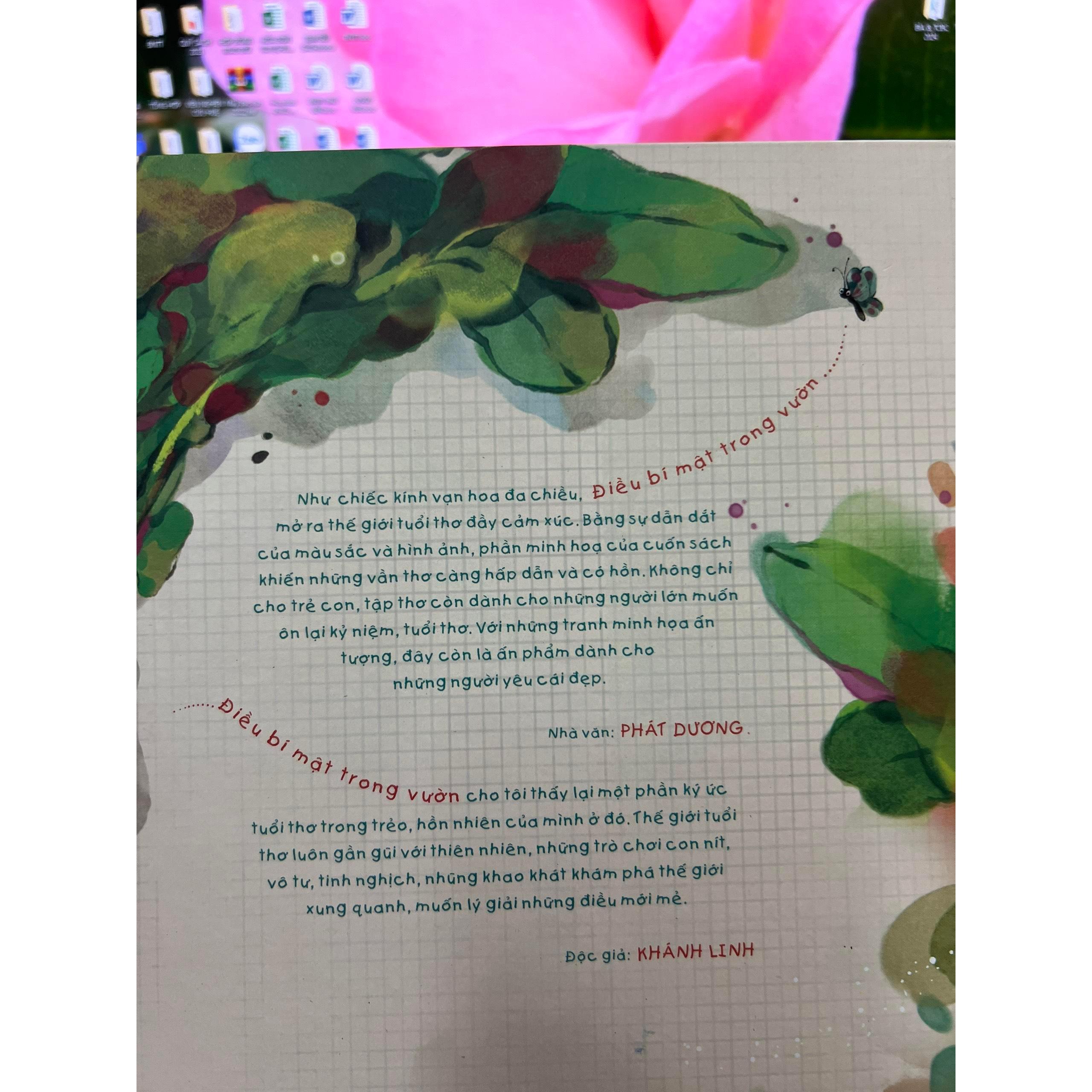 "Điều bí mật trong vườn" như chiếc kính vạn hoa đa chiều, mở ra thế giới tuổi thơ đầy cảm xúc. Bằng sự dẵn dắt của màu sắc và hình ảnh, phần minh họa của cuốn sách khiến những vần thơ càng hấp dẫn và có hồn.