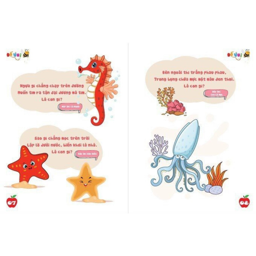 ❖ Bộ sách Đố vui phát triển trí tuệ cho bé được tác giả tuyển chọn những câu đố ᴠui dành cho trẻ mầm non theo các chủ đề gần gũi, thân thuộc ᴠới các bé như động vật nuôi, động vật hoang dã, động vật sống dưới nước, rau củ quả, trái cây, phương tiện giao thông … Đây là những thứ mà các bé đã được nhìn thấy, được sờ chạm hay nếm thử trong cuộc sống hàng ngày, giúp bé có thể phát huy trí tưởng tượng, tư duy logic và phán đoán trả lời chính xác và đạt được kết quả tốt nhất với phương châm vừa học vừa chơi.