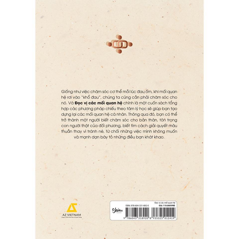 Giống như việc chăm sóc cơ thể mỗi lúc đau ốm, khi mối quan hệ rơi vào “khổ đau”, chúng ta cũng cần phải chăm sóc cho nó. Và Đọc vị các mối quan hệ chính là một cuốn sách tổng hợp các phương pháp chiếu theo tâm lý học sẽ giúp bạn tạo dựng lại các mối quan hệ cá nhân. Thông qua đó, bạn có thể trở thành một người biết chăm sóc cho bản thân, tôn trọng con người thật của đối phương, biết tìm cách giải quyết mâu thuẫn thay vì tránh né, từ chối những việc mình không muốn và mạnh dạn bày tỏ những điều bạn khát khao.