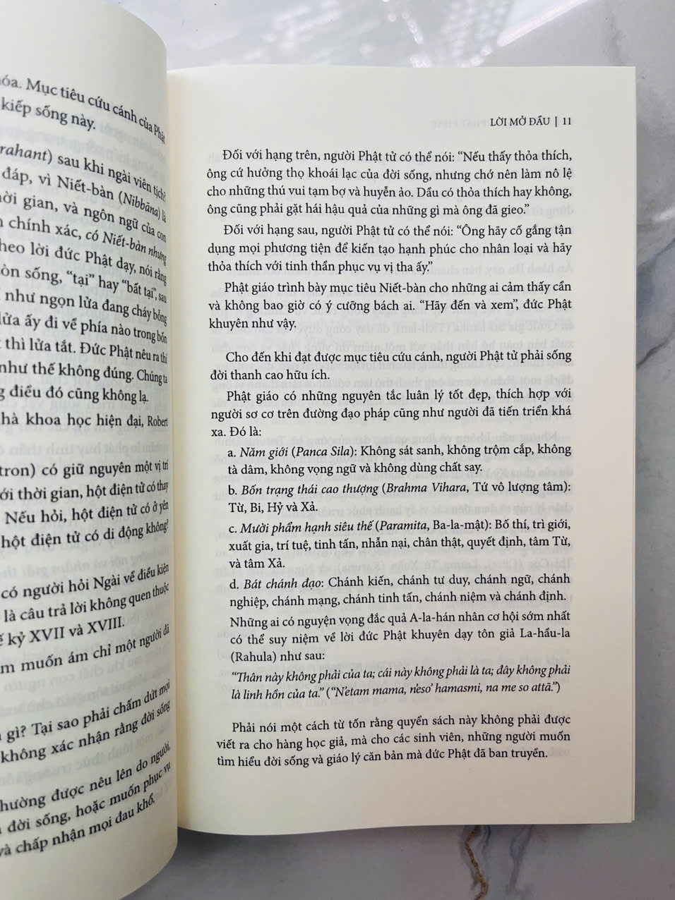 Quyển sách, đơn giản như chính tên sách, gồm 2 phần: Phần I đề cập đến Đức Phật từ Đản sanh đến nhập Niết Bàn, phần II trình bày về Phật Pháp. Chúng tôi xin chia sẻ vắn tắt, giới thiệu về 2 phần này.