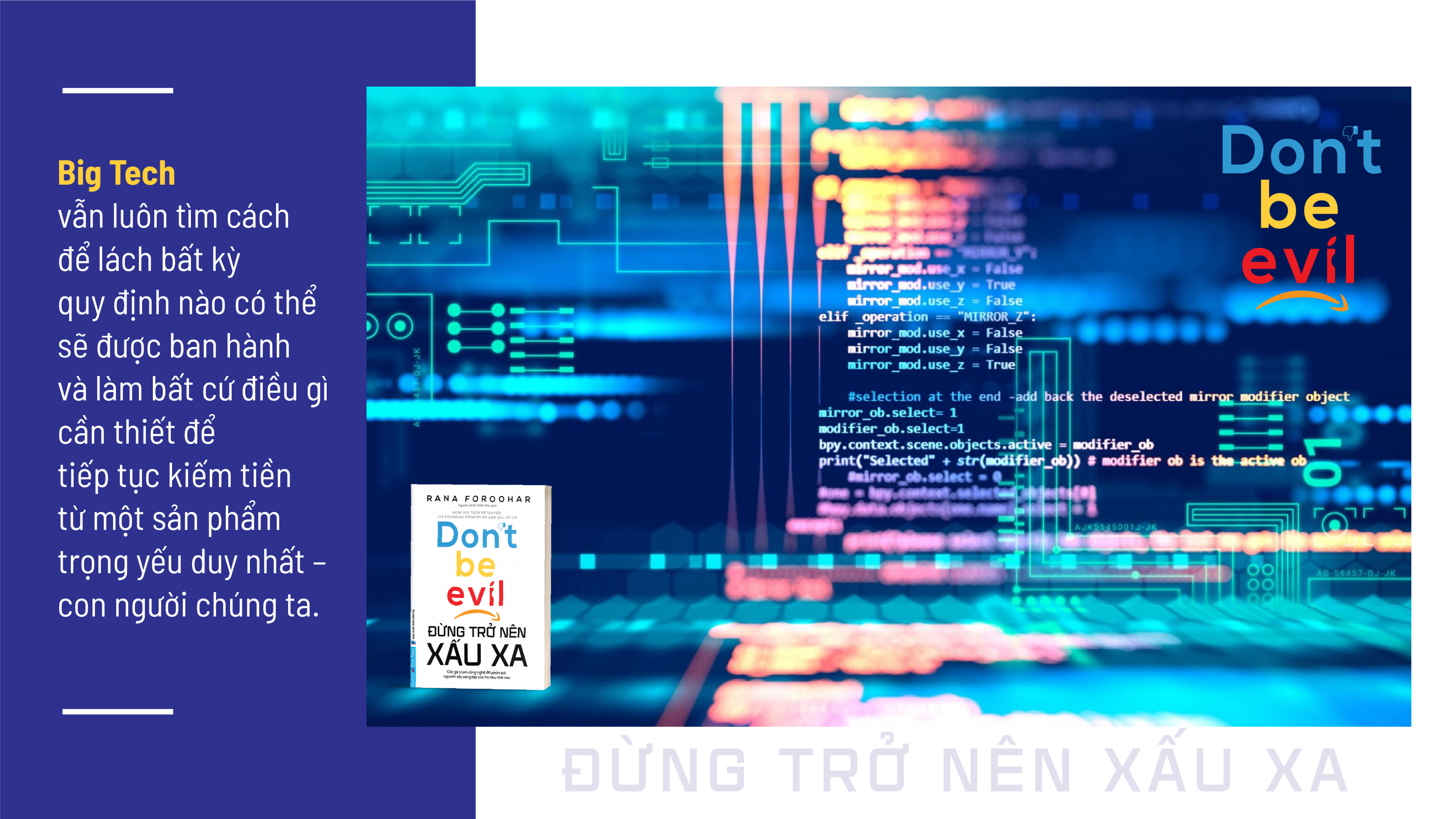 Số trang:464 Kích thước:14.5 x 20.5 cm NXB:Dân Trí Biên dịch: Nguyễn Minh Thiên Kim Tác giả: Rona Foroohar   ĐỪNG TRỞ NÊN XẤU XA Tôi đã làm việc chăm chỉ trong gần hai năm,